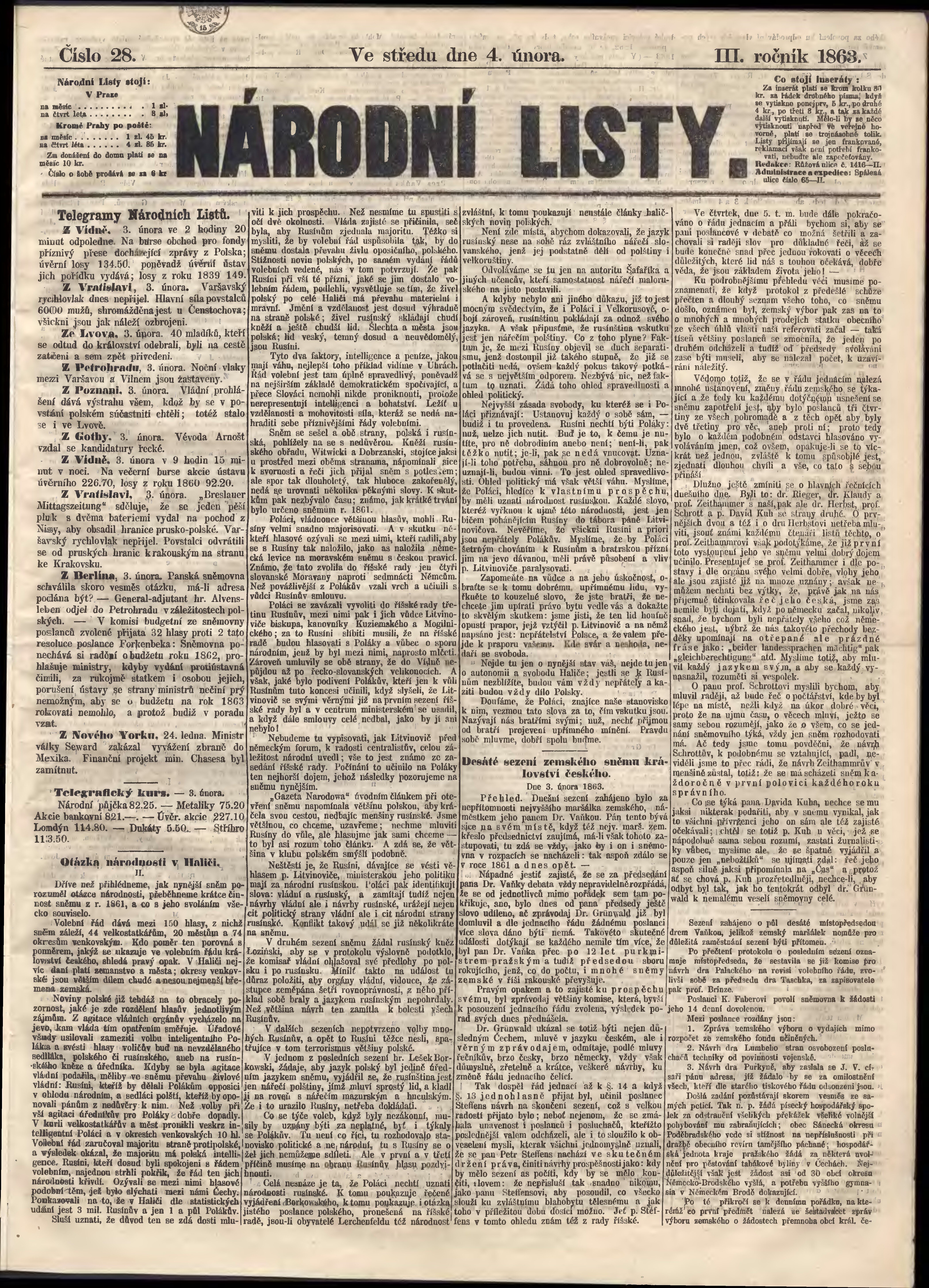 * Datum vydání výtisku: 4.2.1863 Číslo výtisku: 28