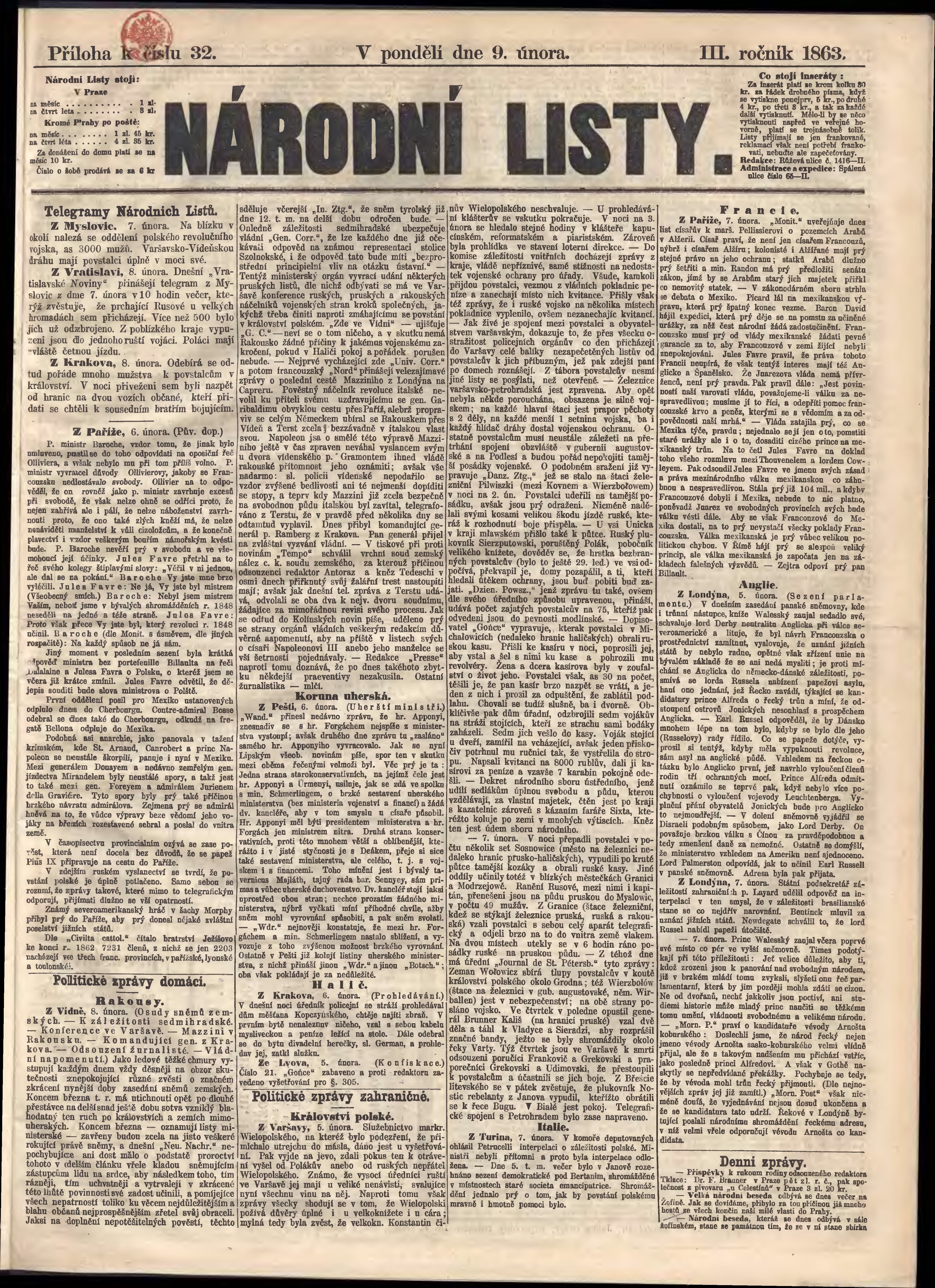 * Datum vydání výtisku: 9.2.1863 Číslo výtisku: 32 Typ výtisku: příloha