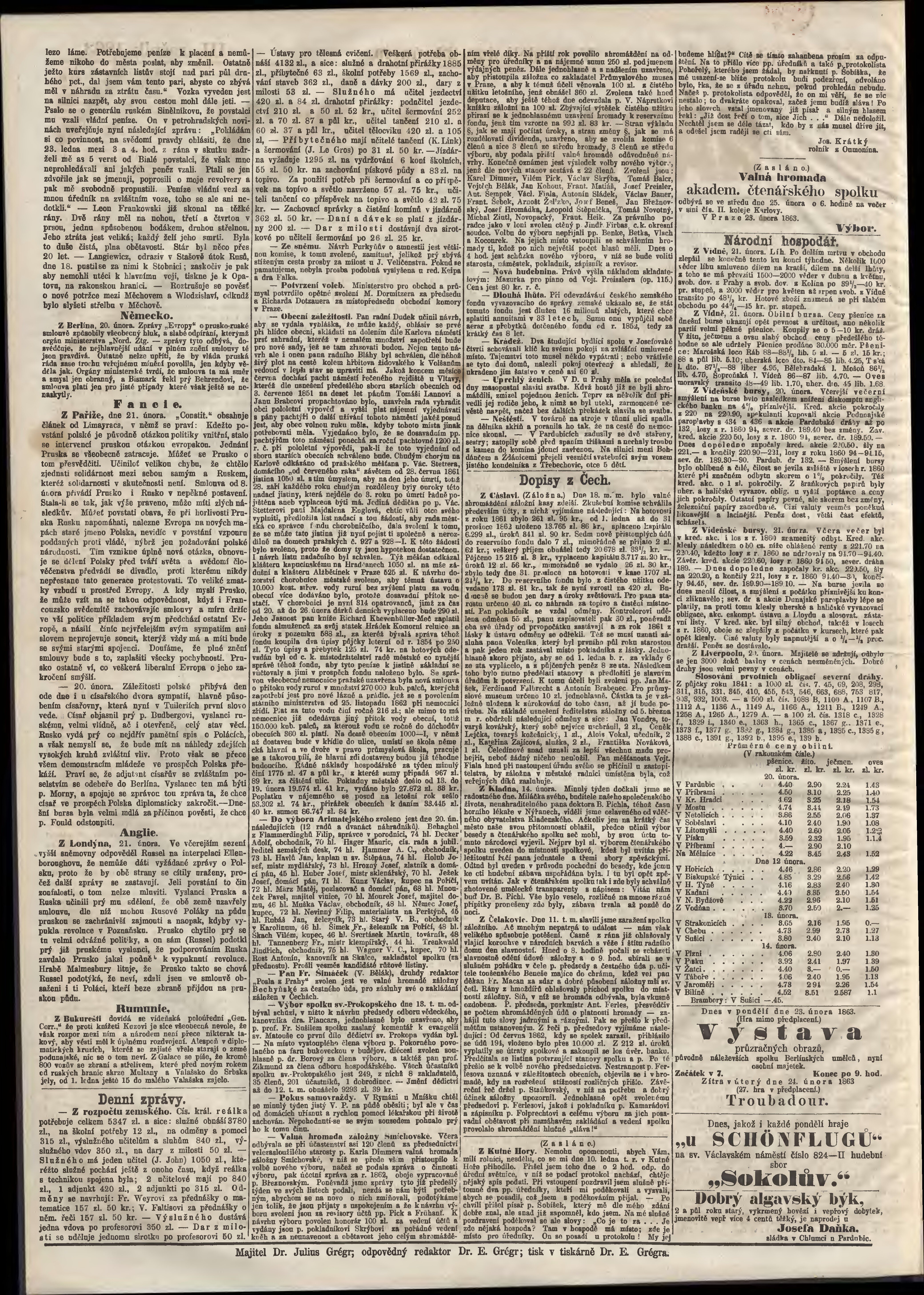 * Datum vydání výtisku: 23.2.1863 Číslo výtisku: 44 Typ výtisku: příloha