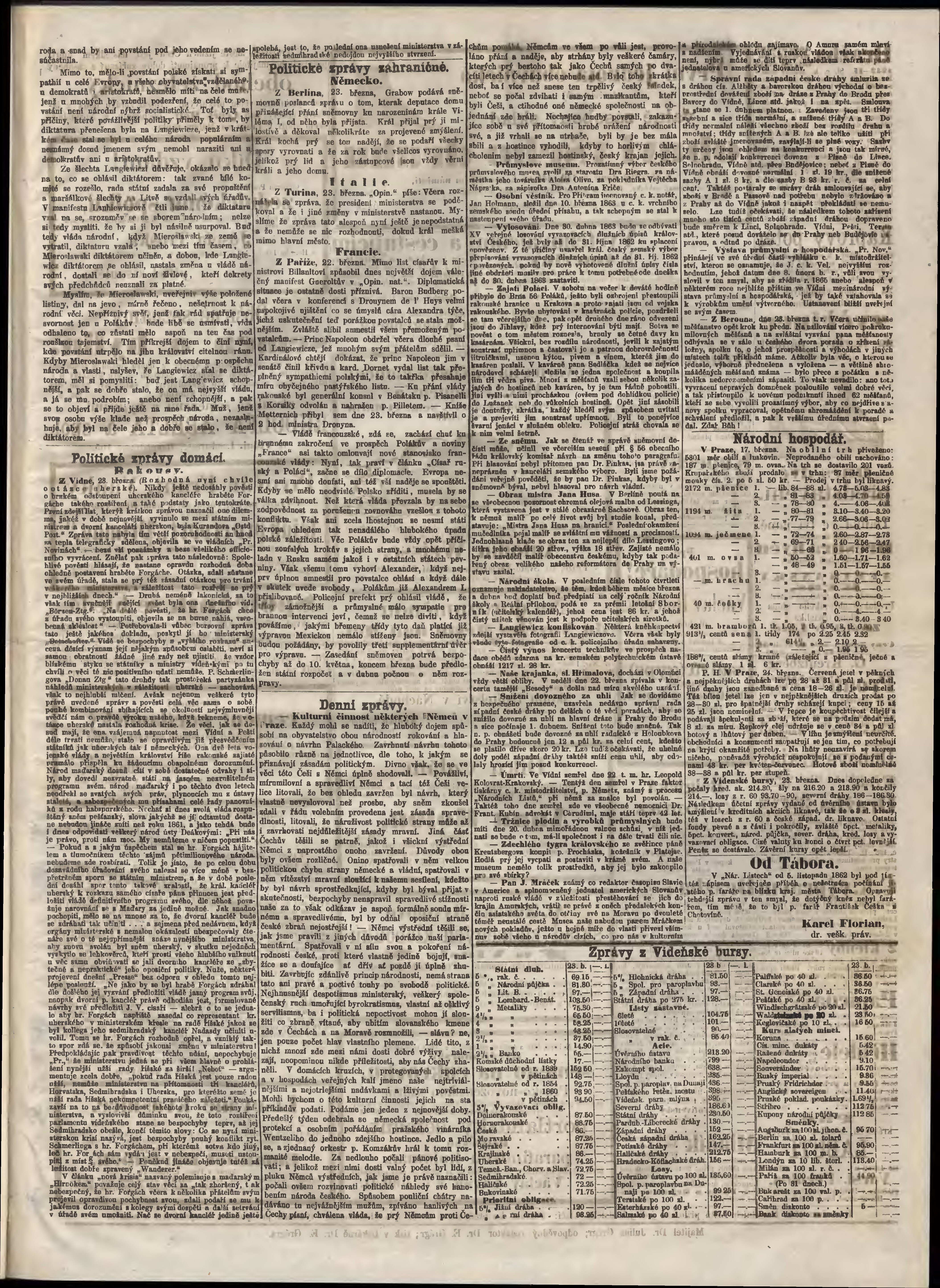 * Datum vydání výtisku: 25.3.1863 Číslo výtisku: 70