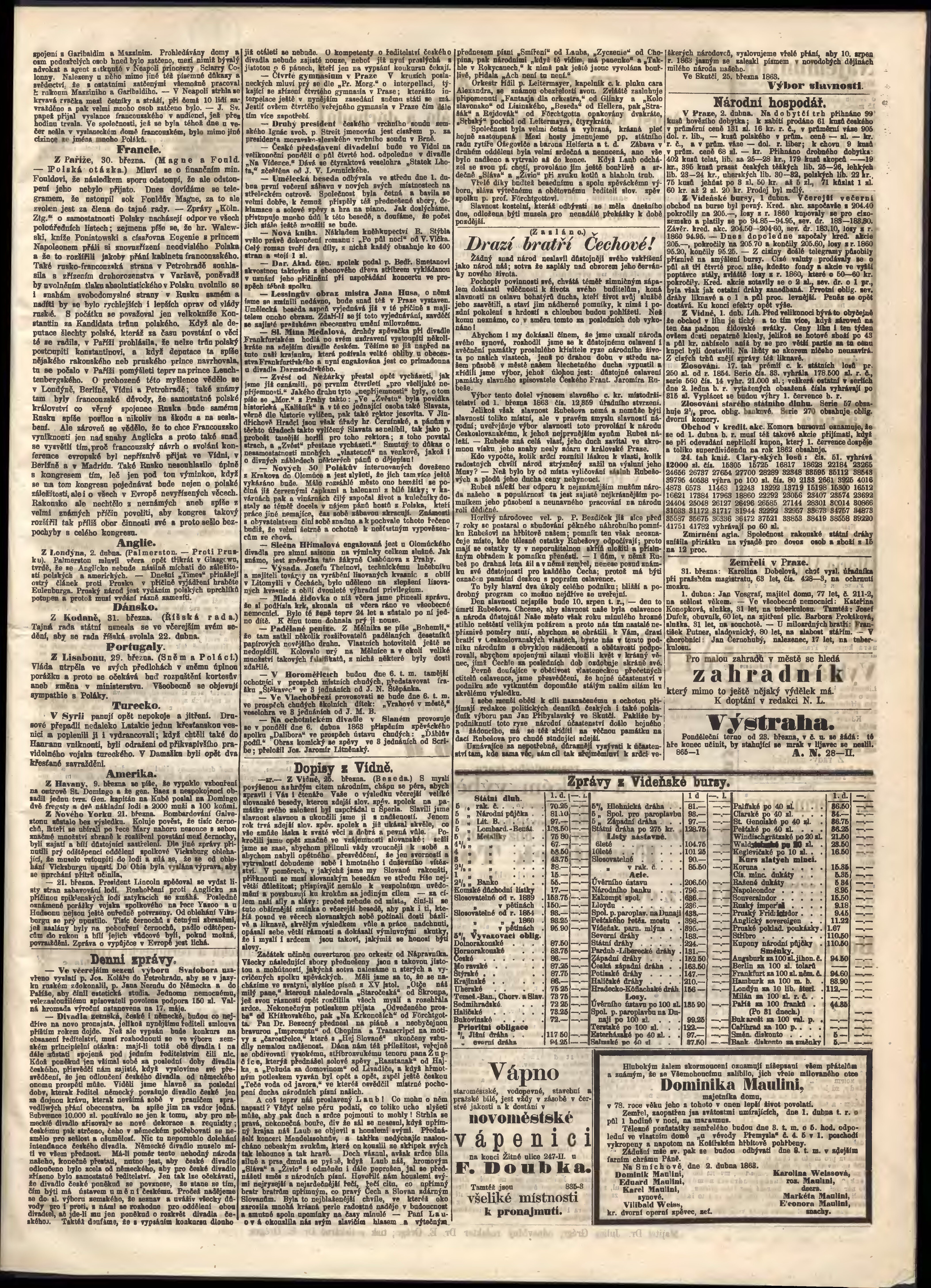 * Datum vydání výtisku: 3.4.1863 Číslo výtisku: 78