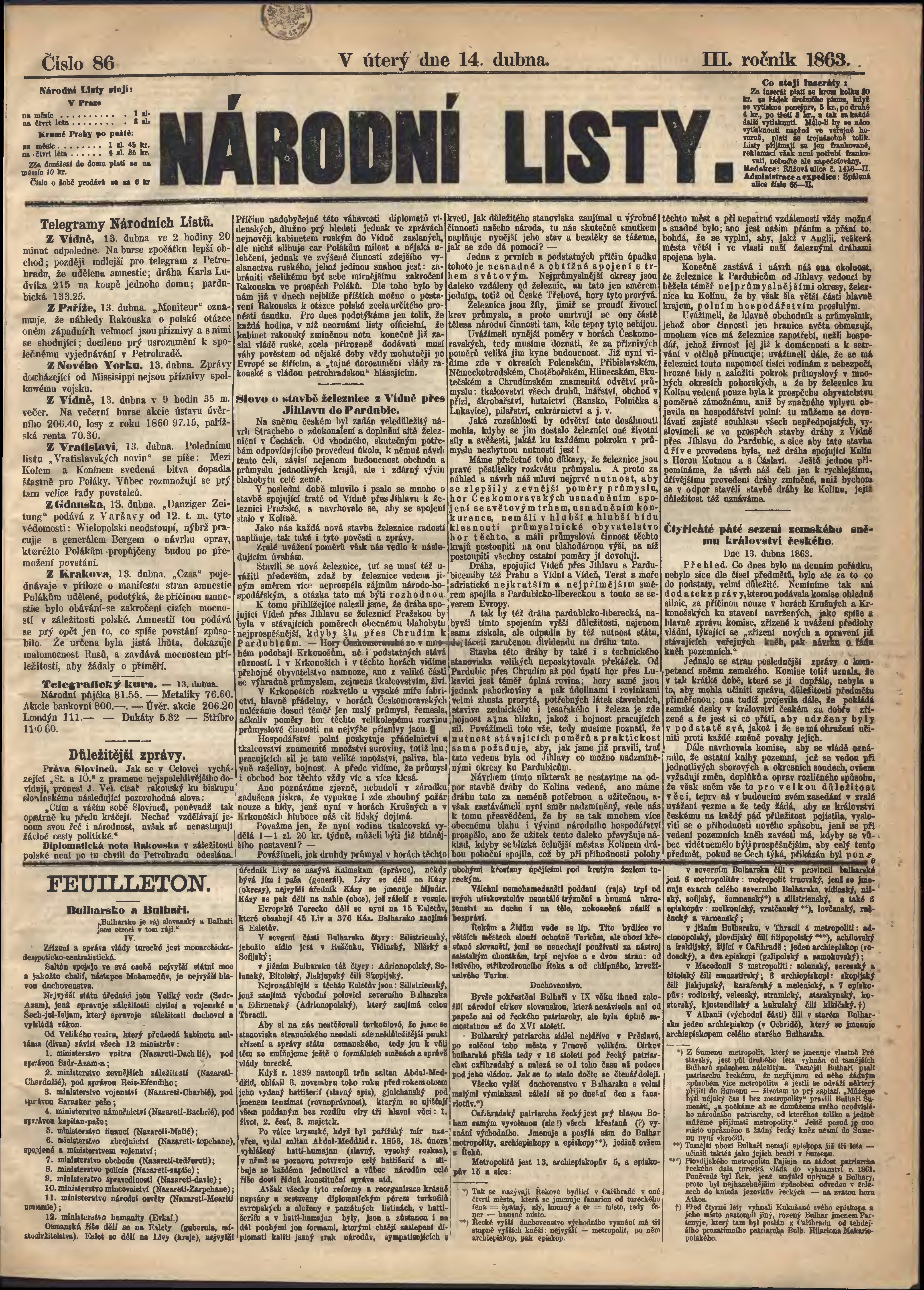 * Datum vydání výtisku: 14.4.1863 Číslo výtisku: 86