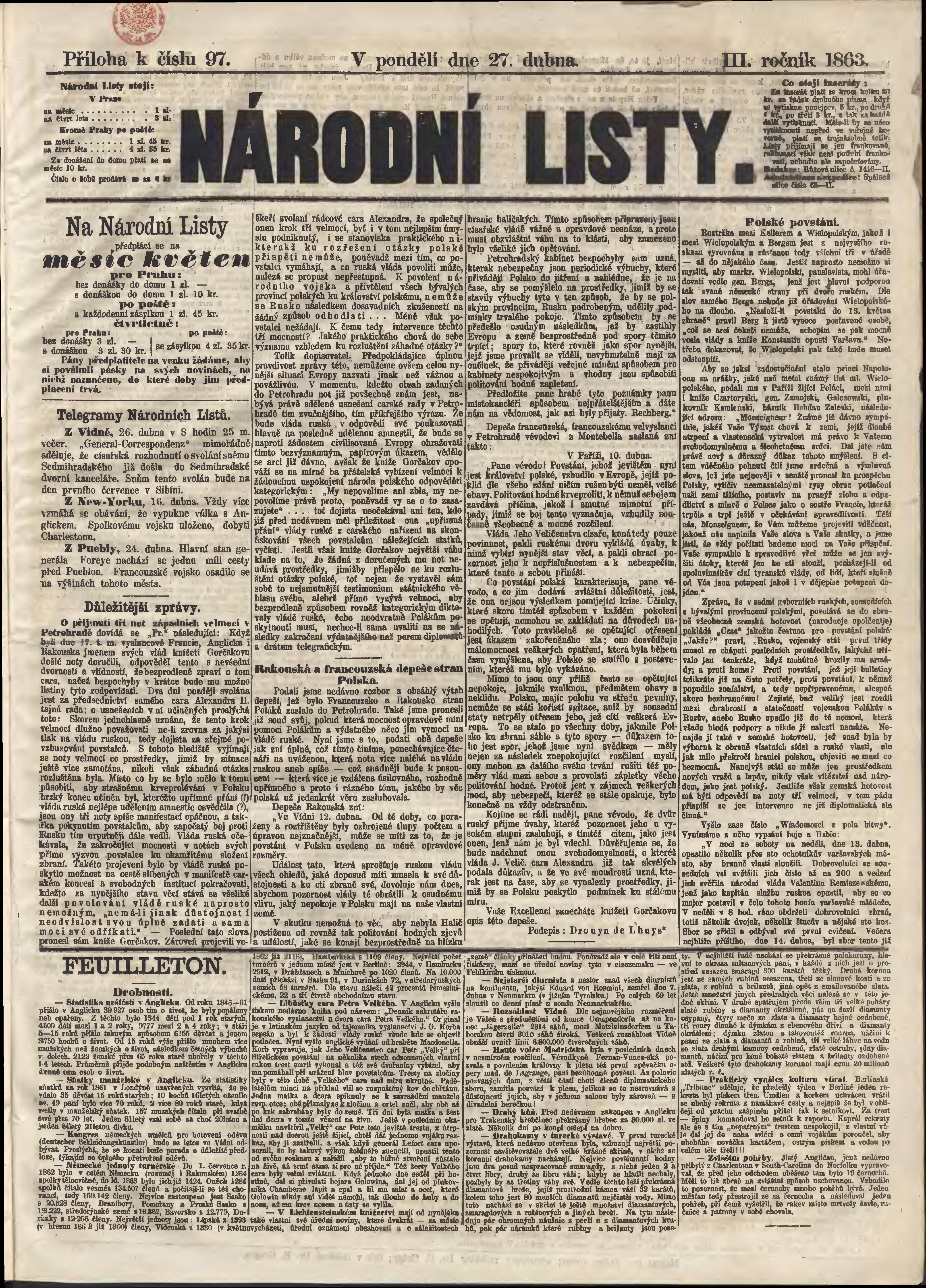 * Datum vydání výtisku: 27.4.1863 Číslo výtisku: 97 Typ výtisku: příloha