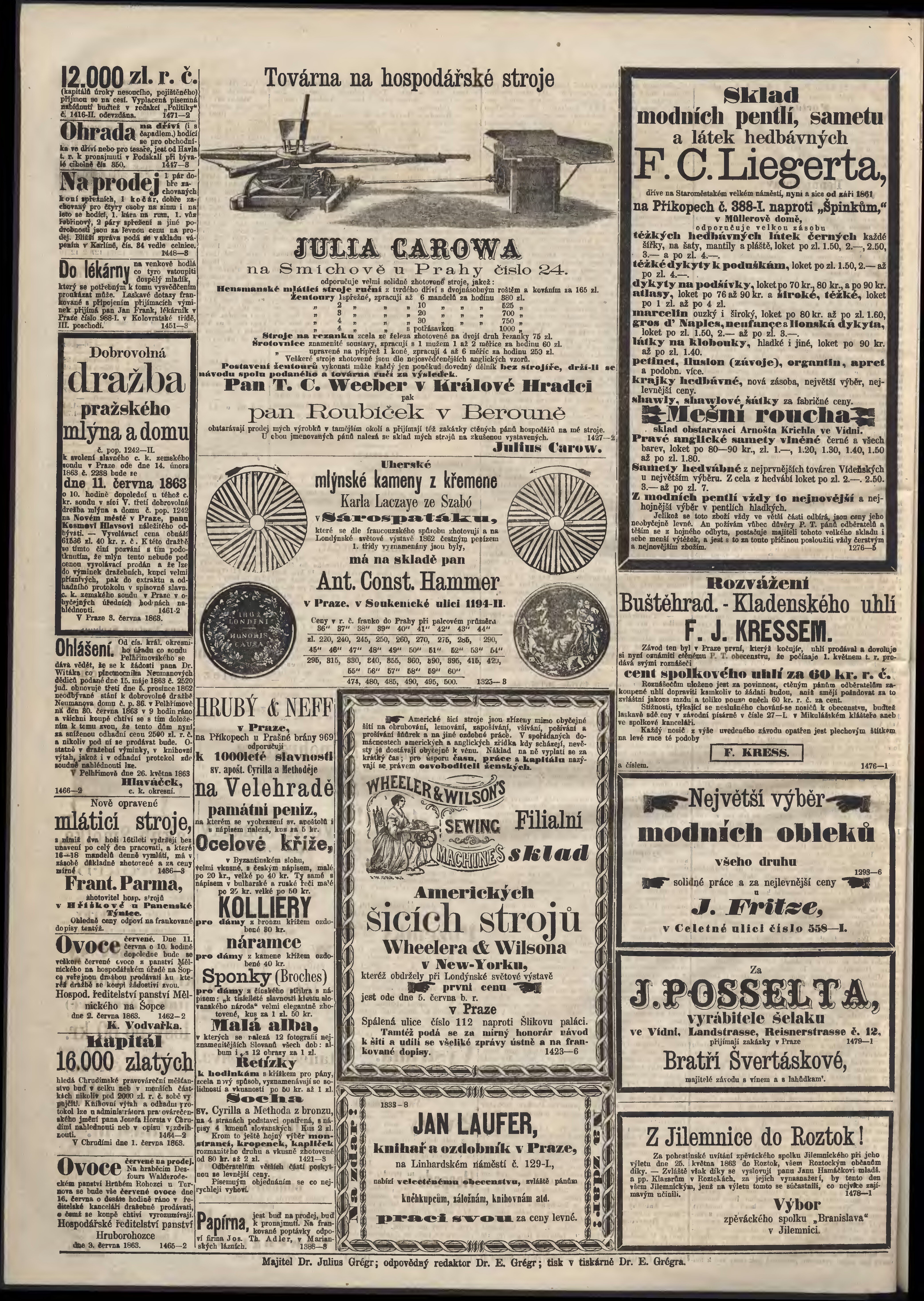 * Datum vydání výtisku: 7.6.1863 Číslo výtisku: 131