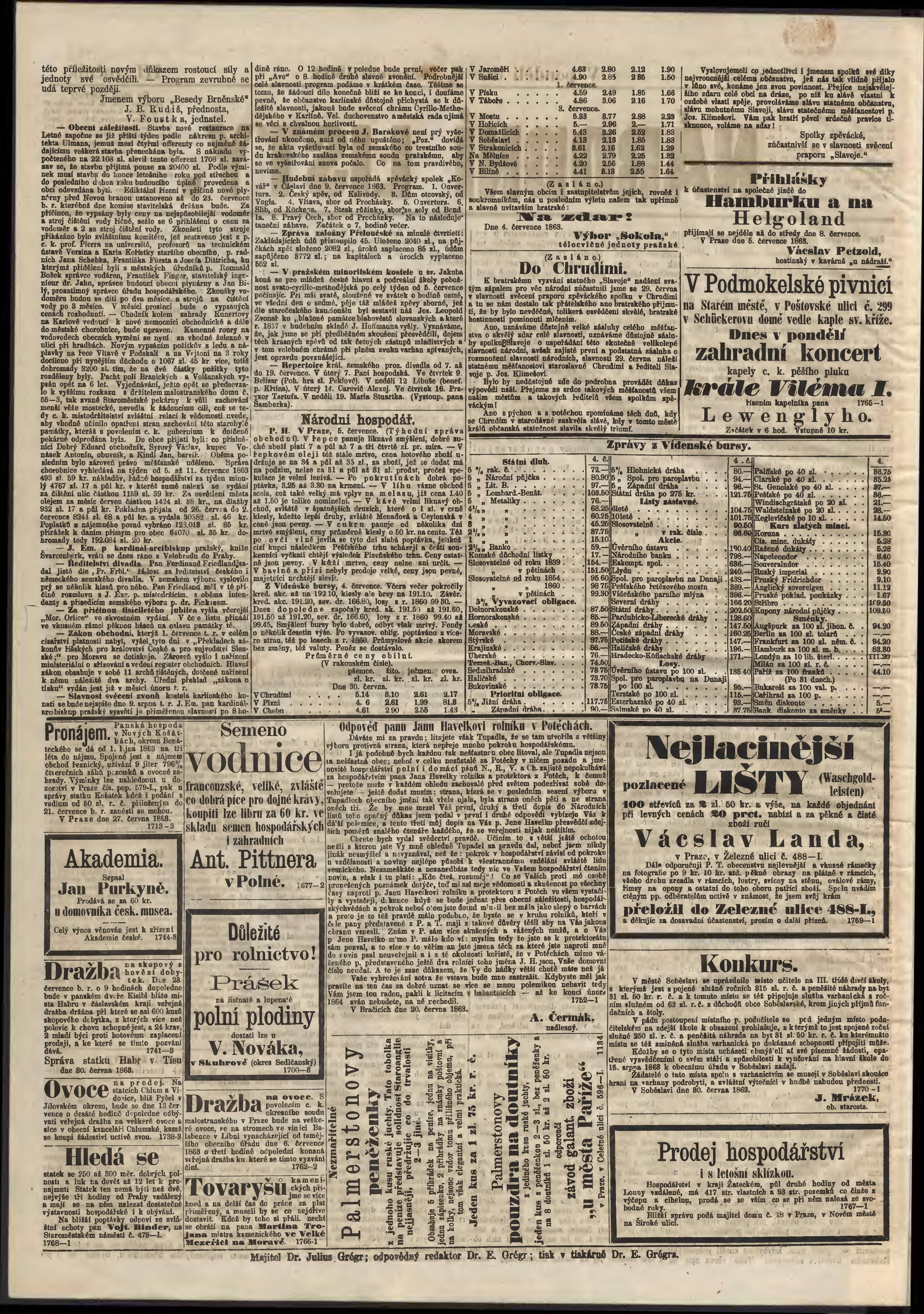 * Datum vydání výtisku: 6.7.1863 Číslo výtisku: 155 Typ výtisku: příloha