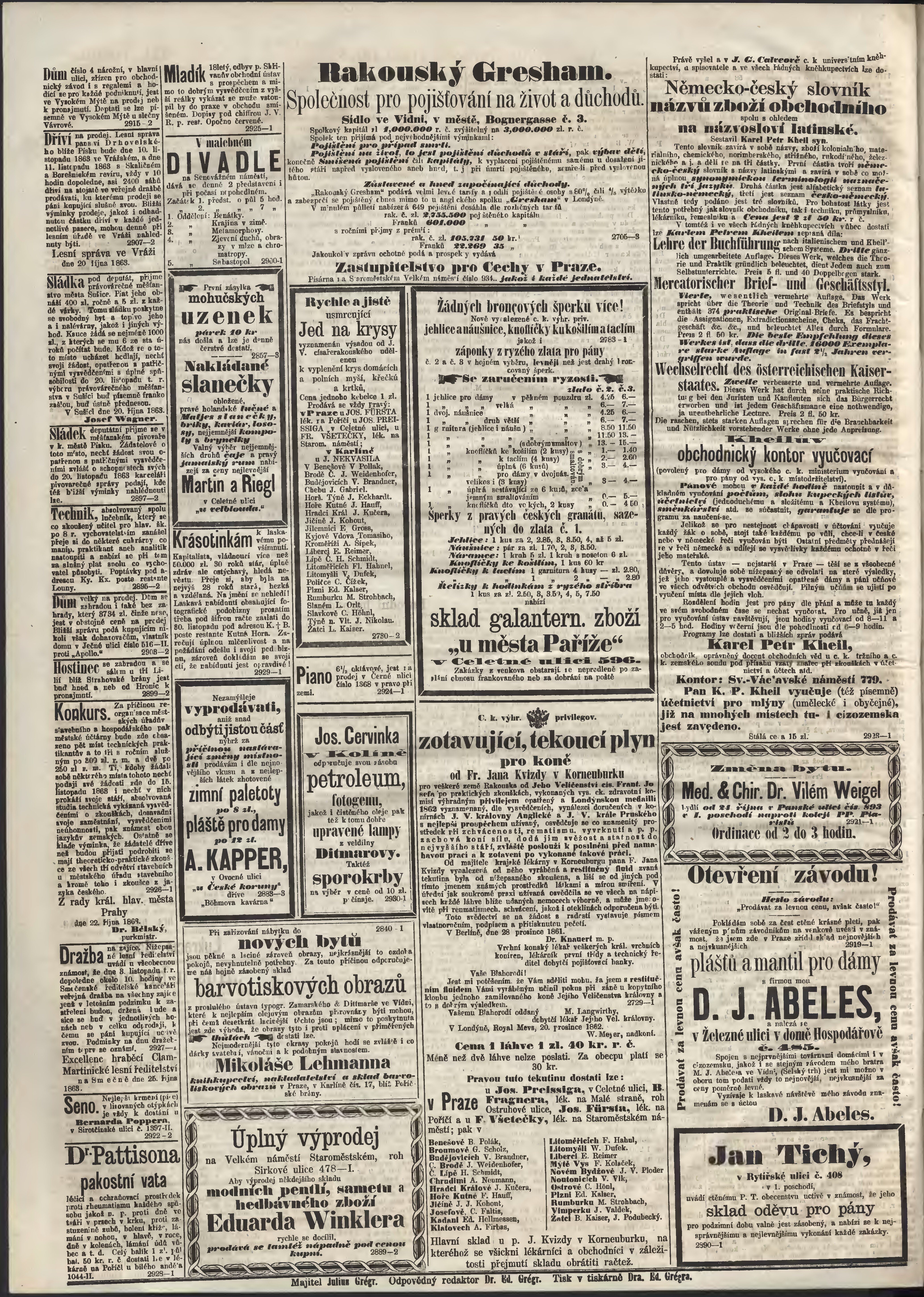 * Datum vydání výtisku: 27.10.1863 Číslo výtisku: 250