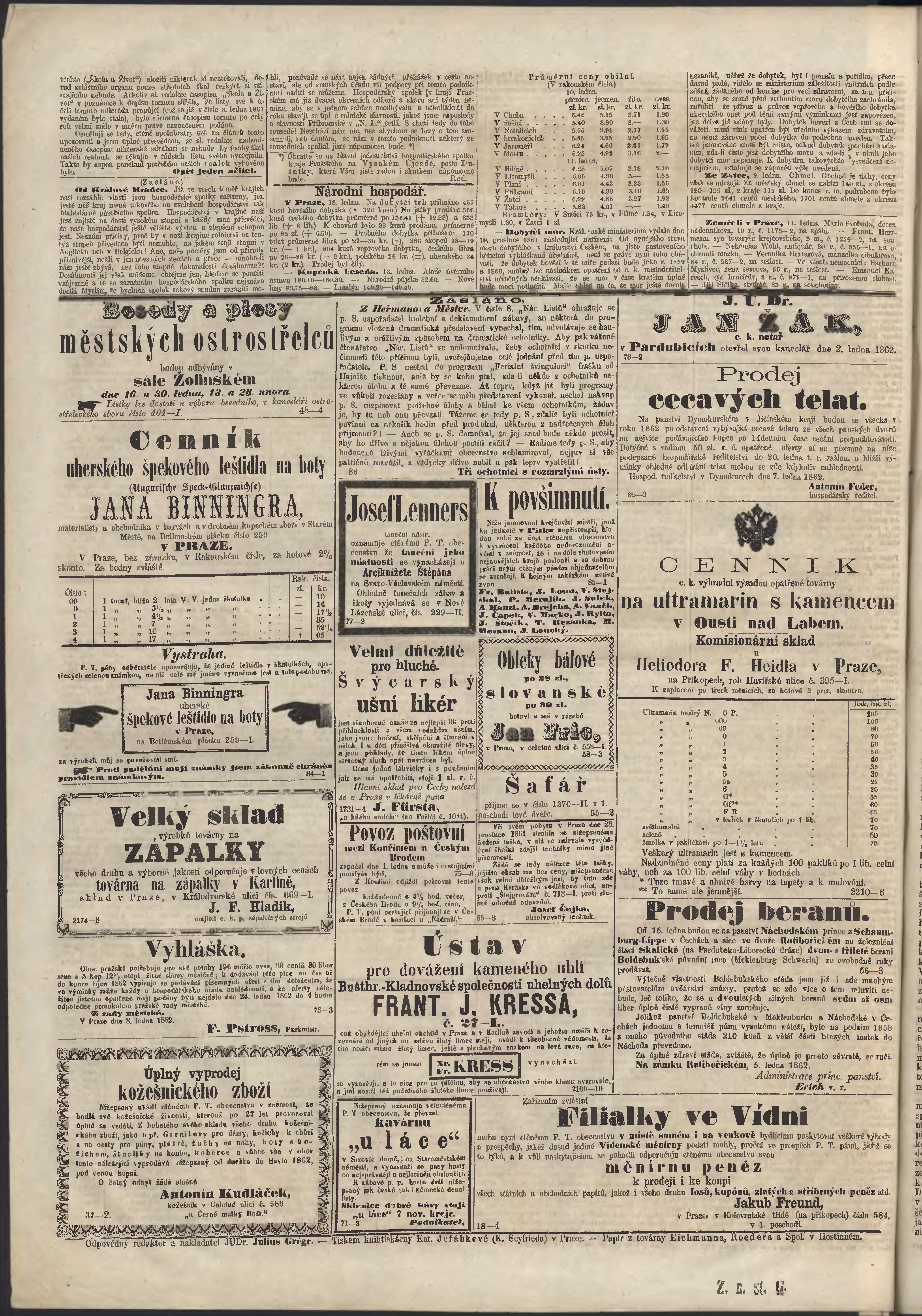* Datum vydání výtisku: 14.1.1862 Číslo výtisku: 11