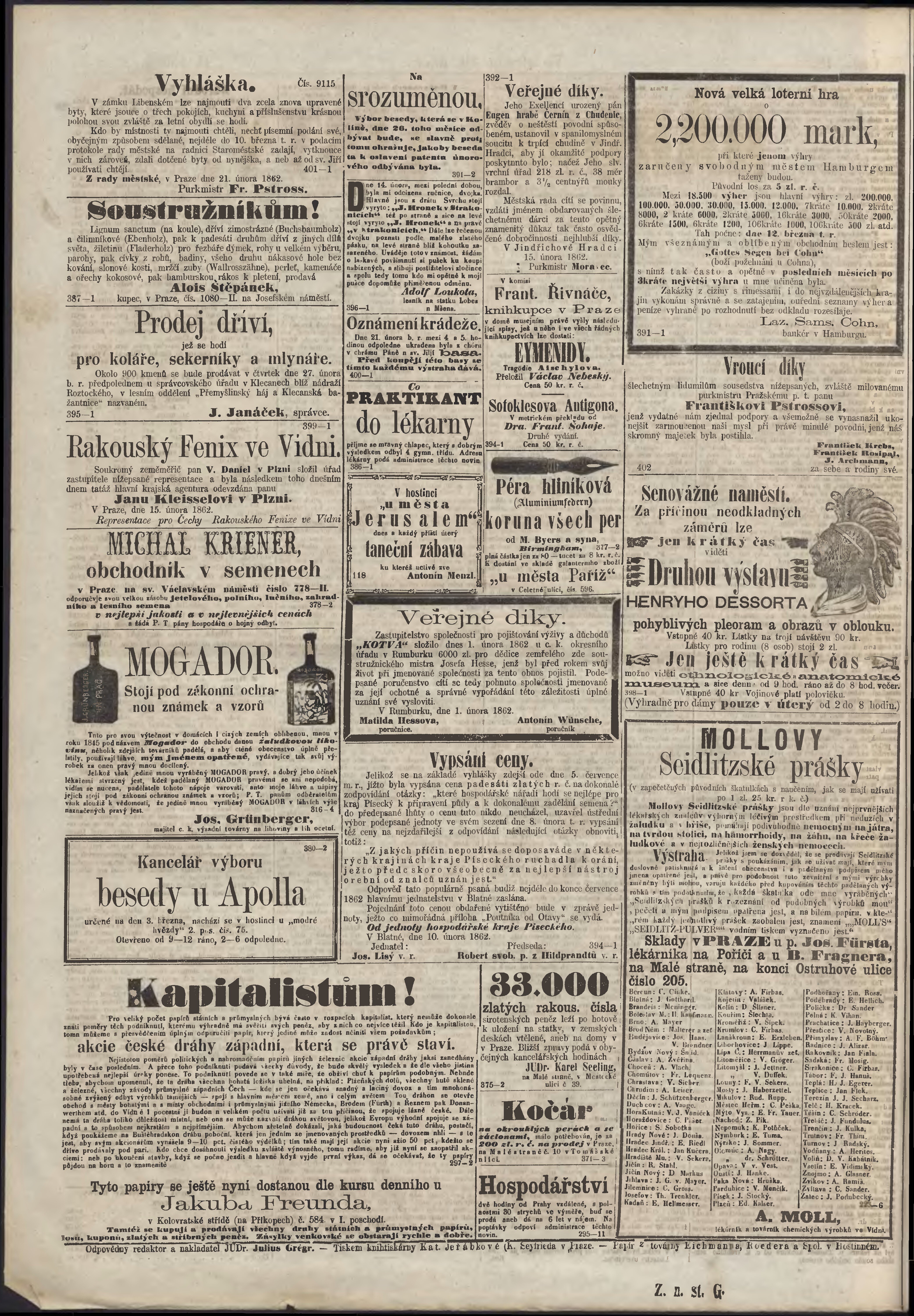 * Datum vydání ročníku: 1862 Číslo ročníku: 2