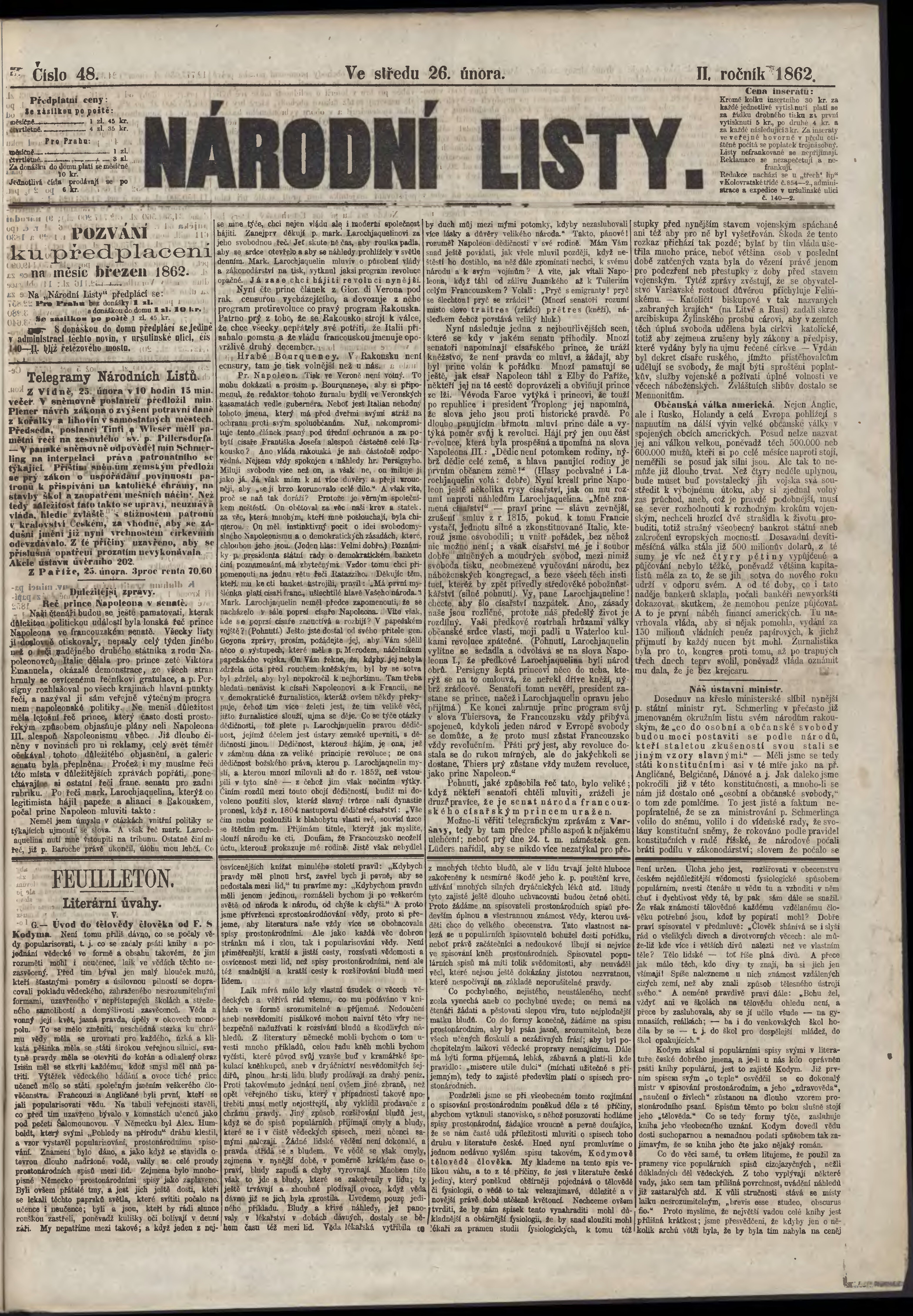 * Datum vydání výtisku: 26.2.1862 Číslo výtisku: 48