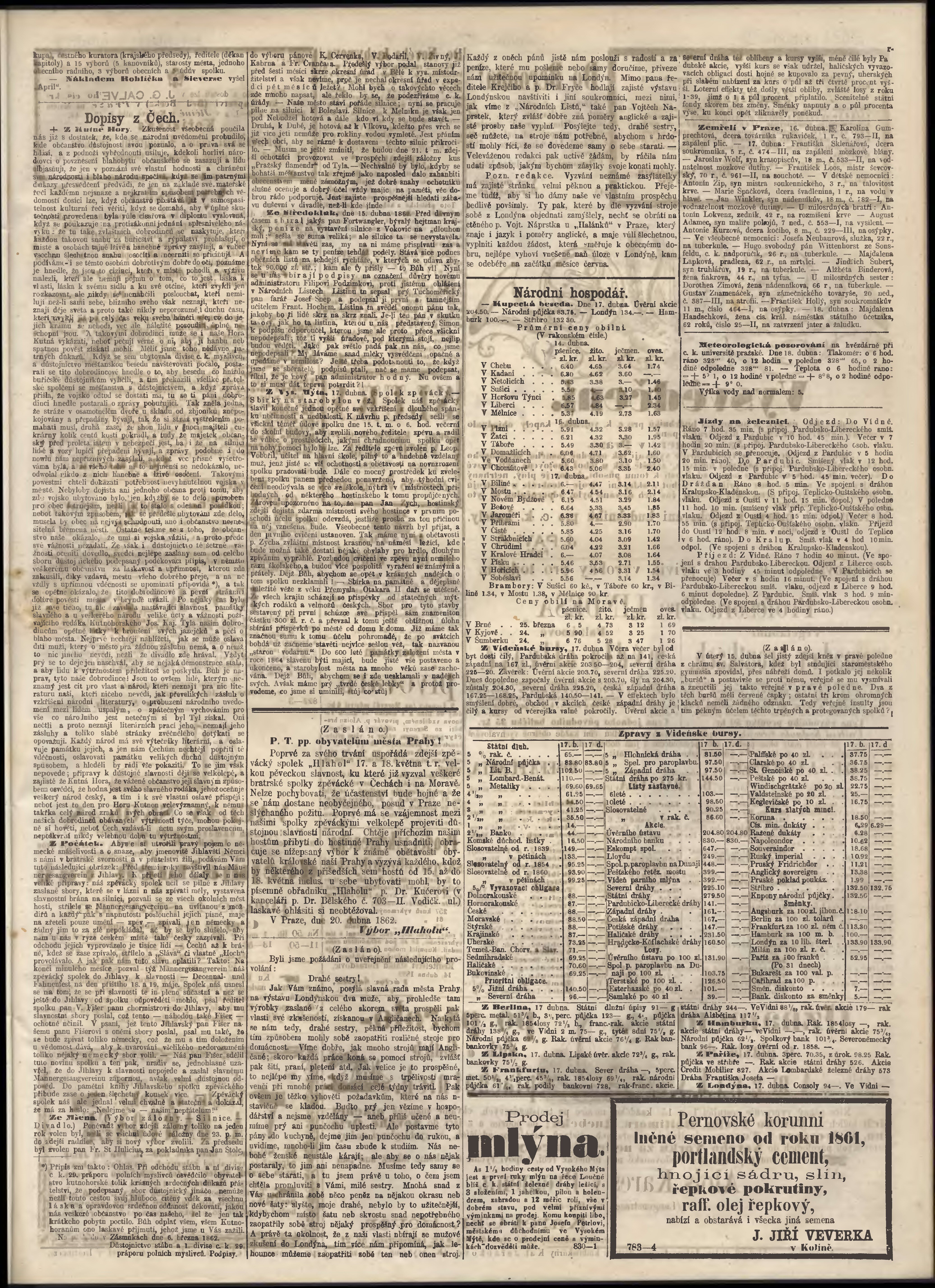 * Datum vydání výtisku: 19.4.1862 Číslo výtisku: 93