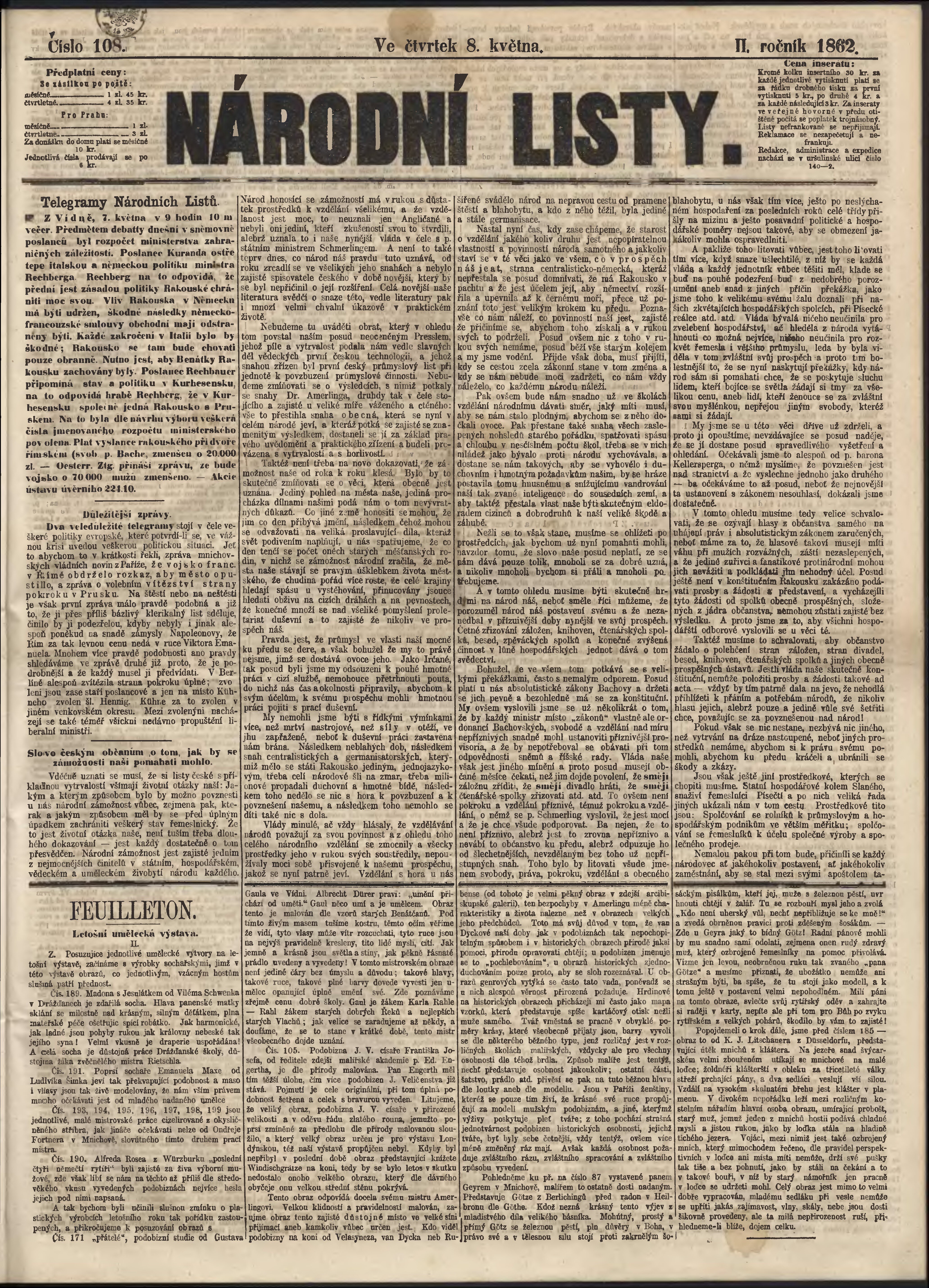 * Datum vydání výtisku: 8.5.1862 Číslo výtisku: 108