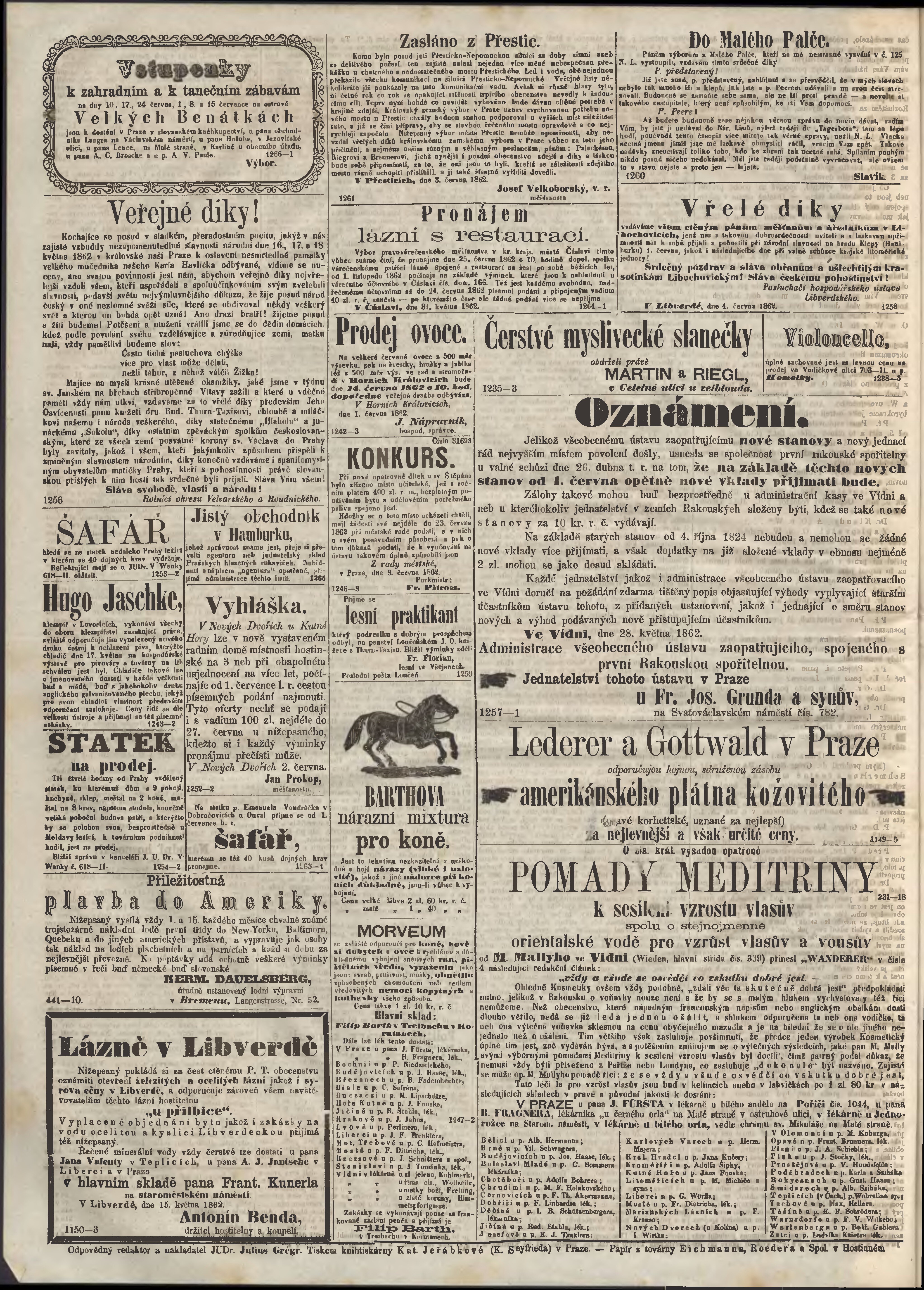 * Datum vydání výtisku: 6.6.1862 Číslo výtisku: 133