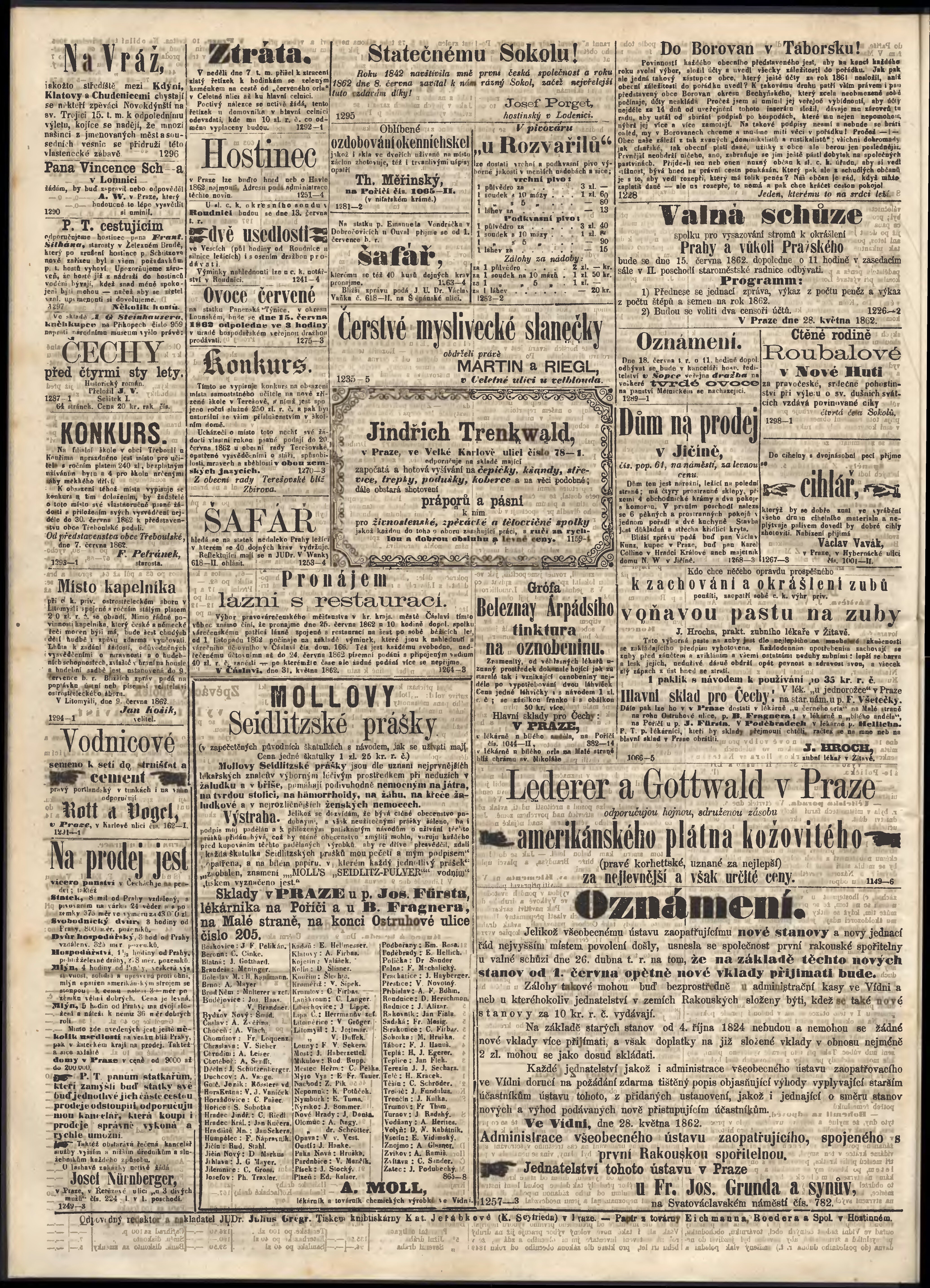 * Datum vydání výtisku: 11.6.1862 Číslo výtisku: 136