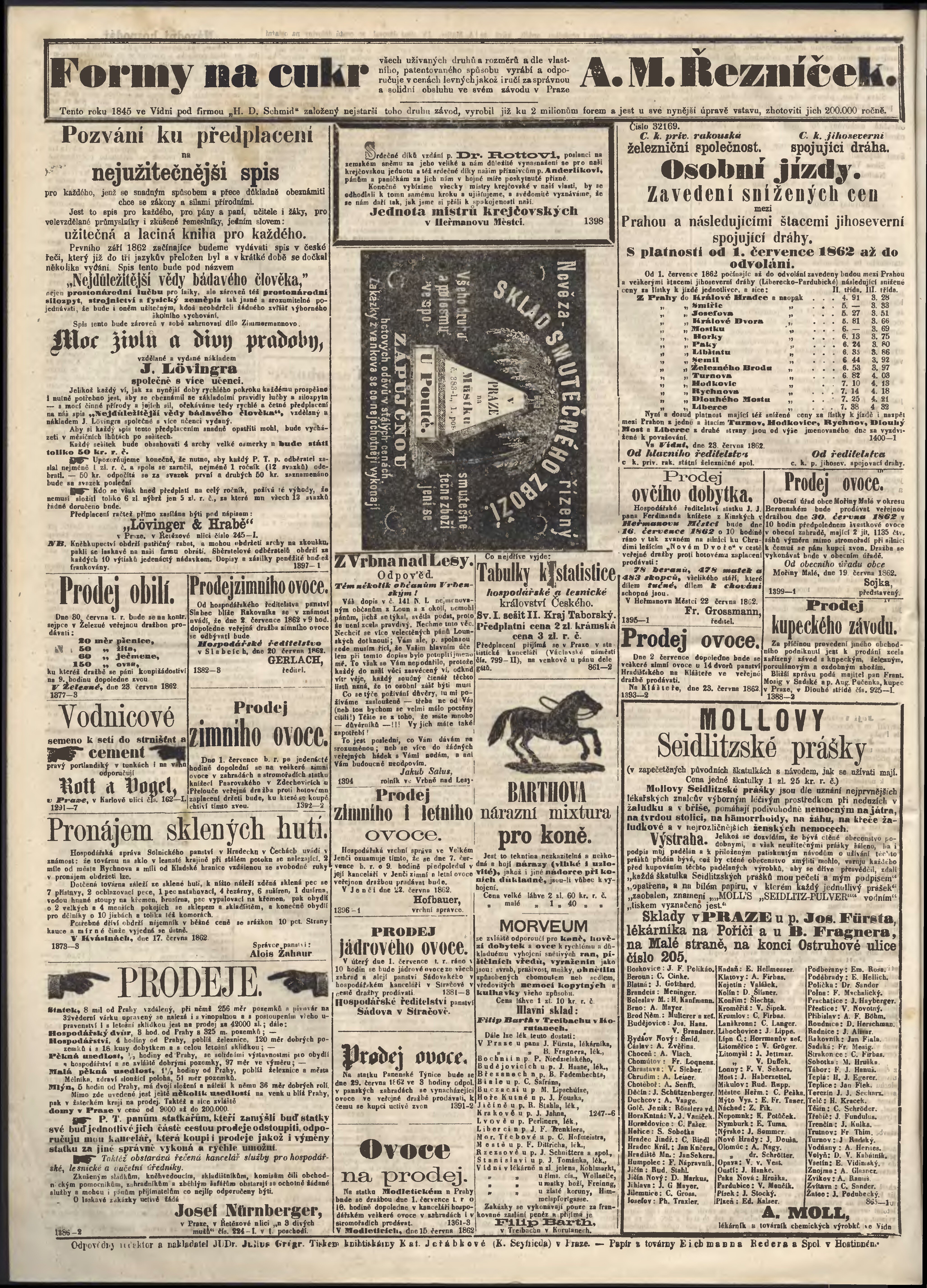 * Datum vydání výtisku: 26.6.1862 Číslo výtisku: 148