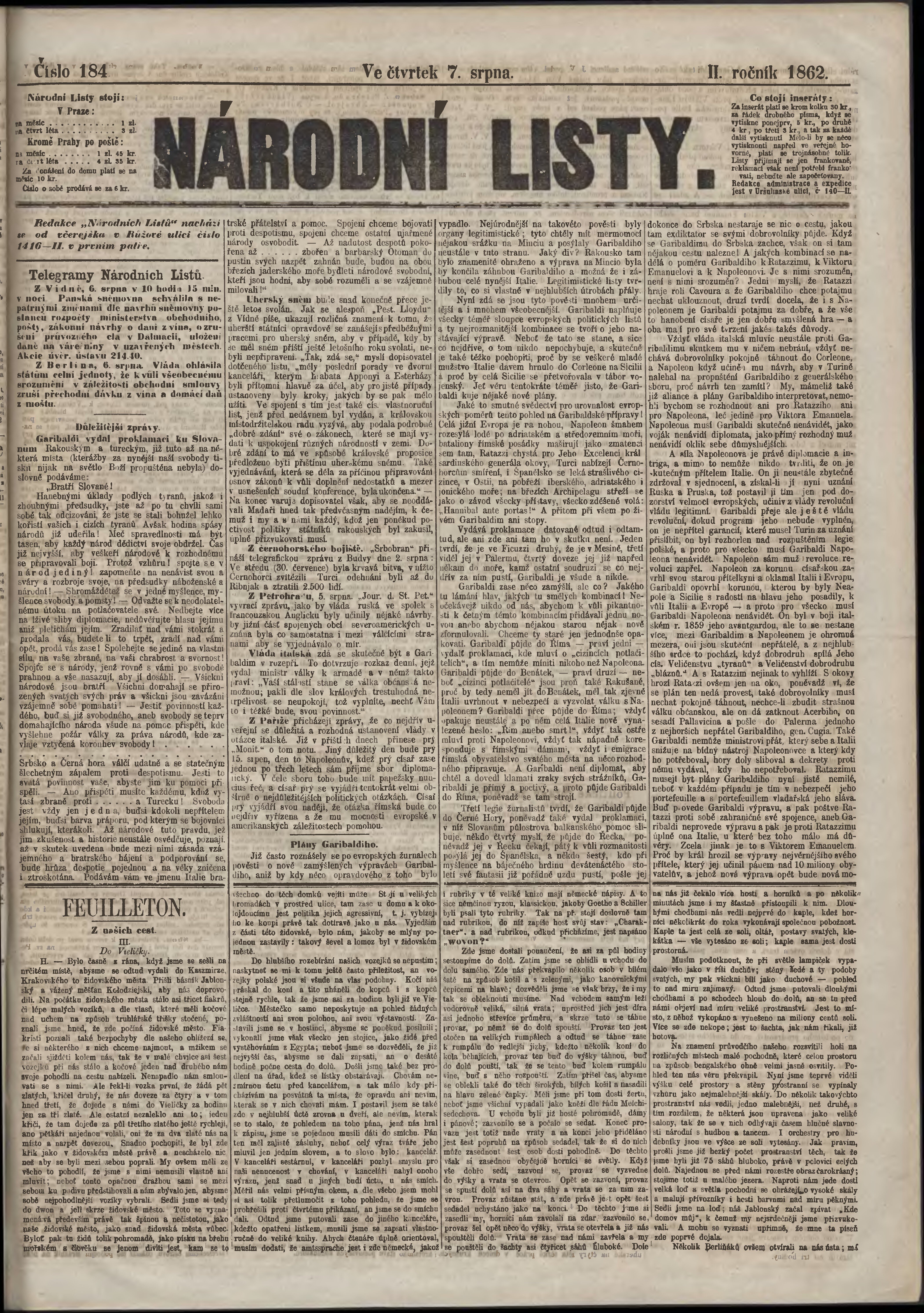 * Datum vydání výtisku: 7.8.1862 Číslo výtisku: 184
