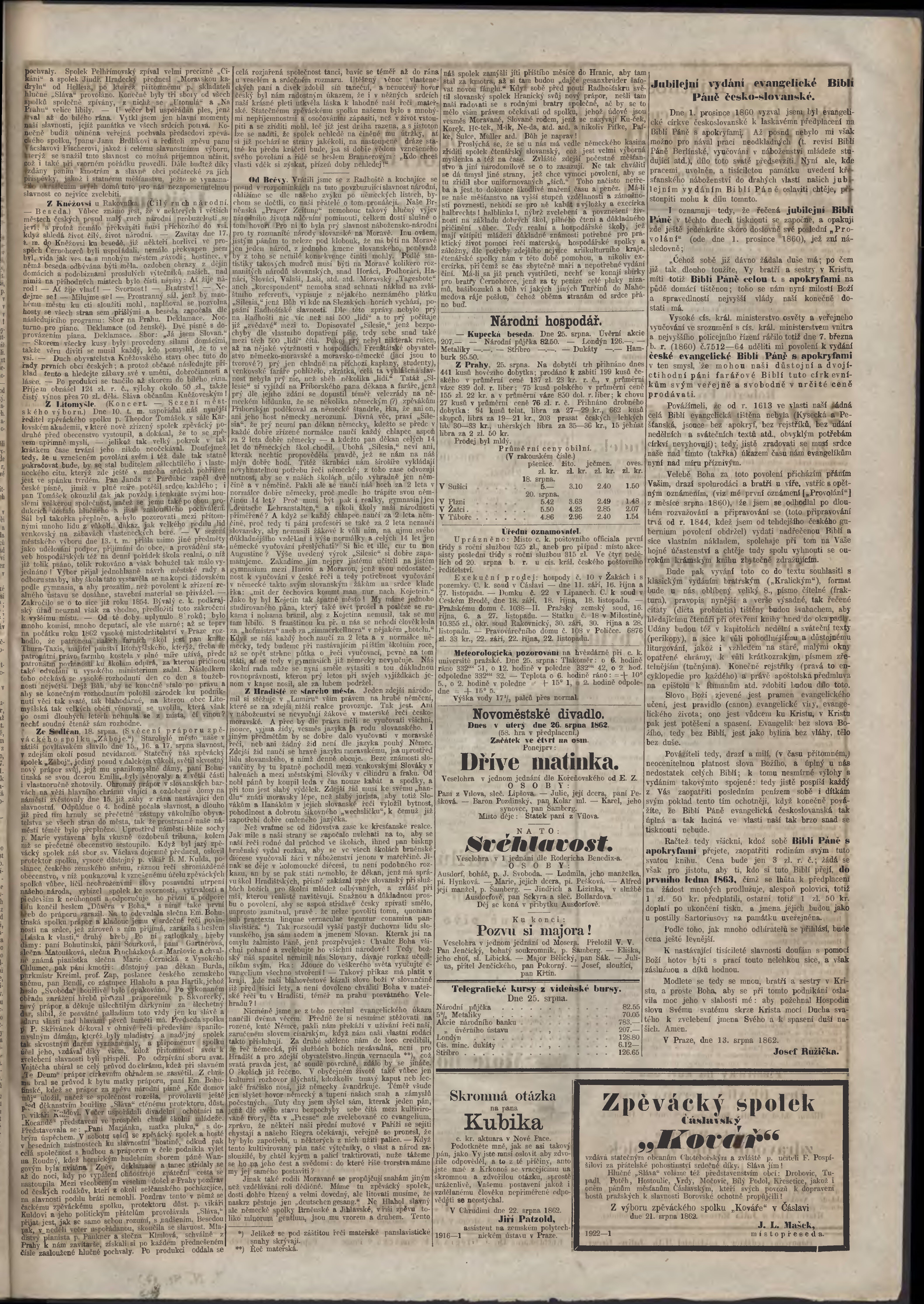 * Datum vydání výtisku: 26.8.1862 Číslo výtisku: 200