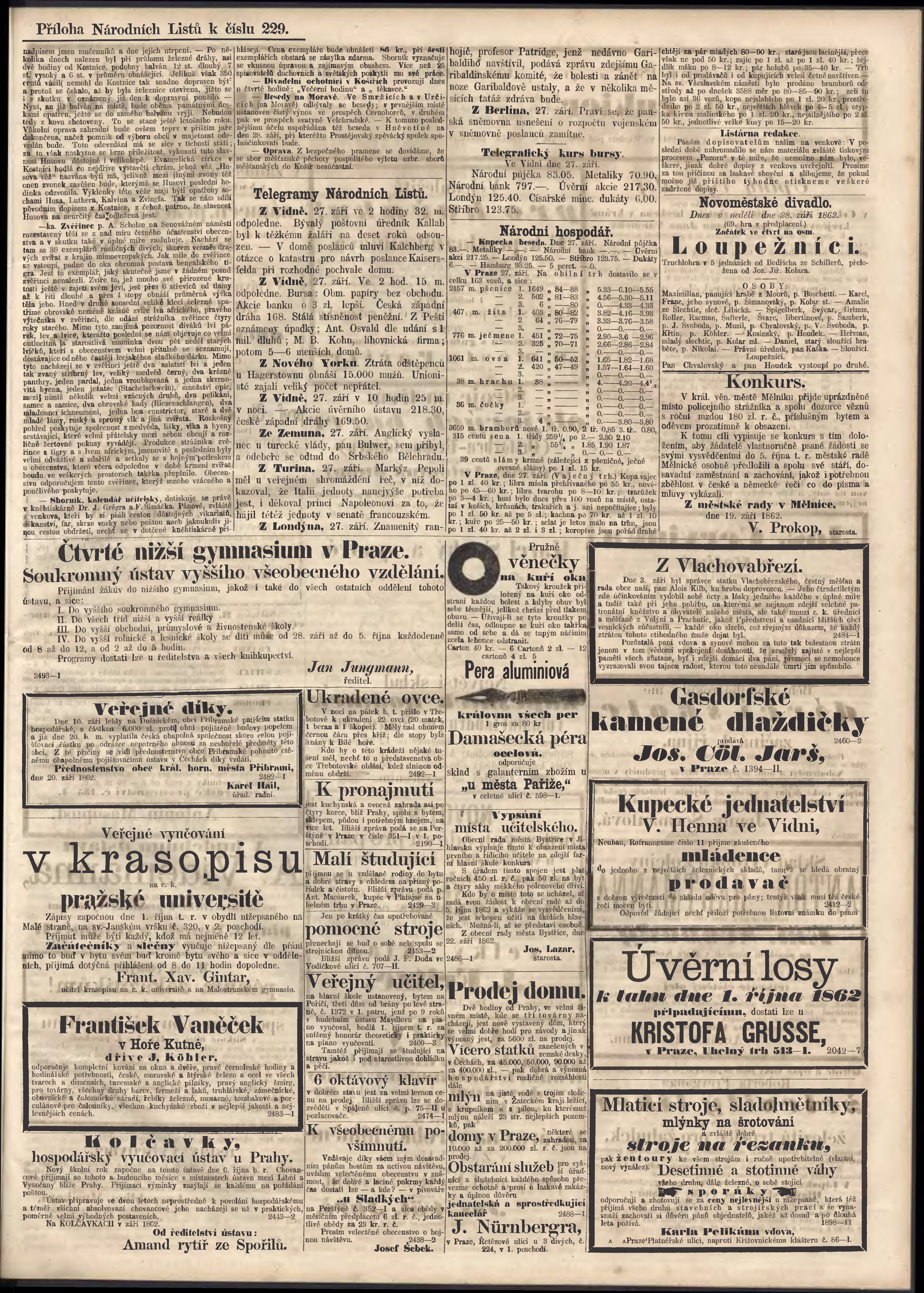 * Datum vydání výtisku: 28.9.1862 Číslo výtisku: 229