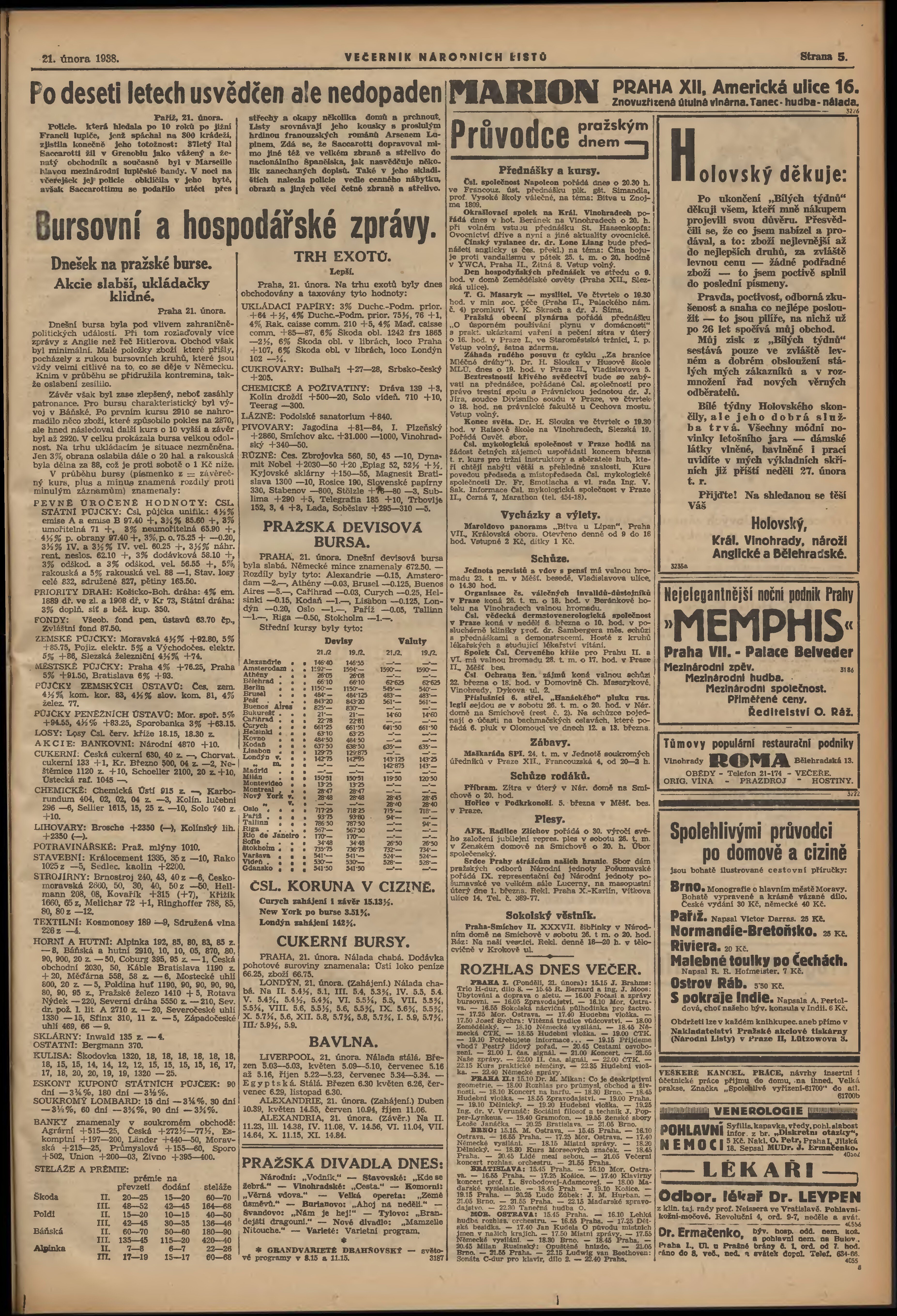 * Datum vydání výtisku: 21.2.1938 Číslo výtisku: 51 Poznámky k výtisku: večerní vydání;