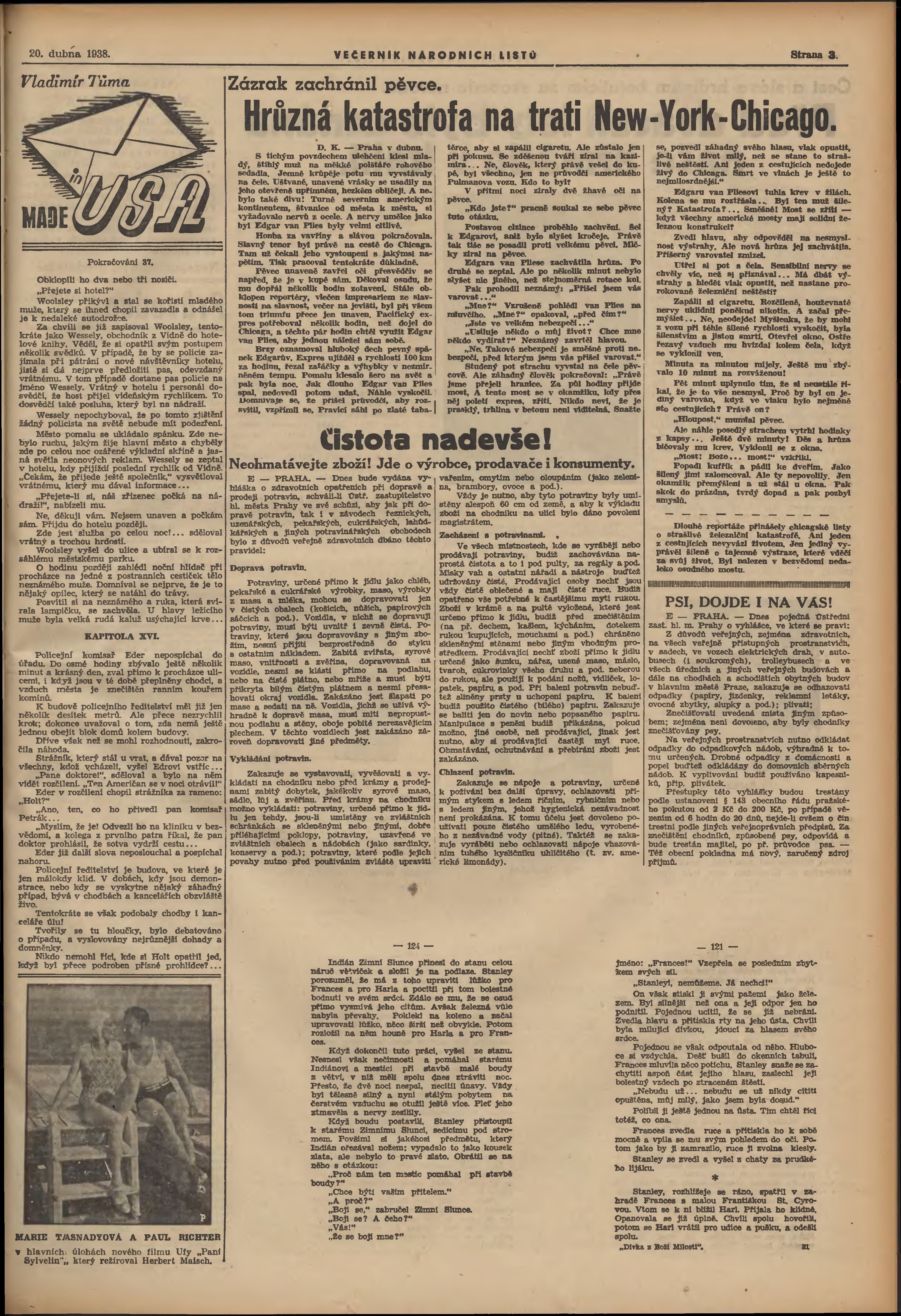 * Datum vydání výtisku: 20.4.1938 Číslo výtisku: 108 Poznámky k výtisku: večerní vydání;