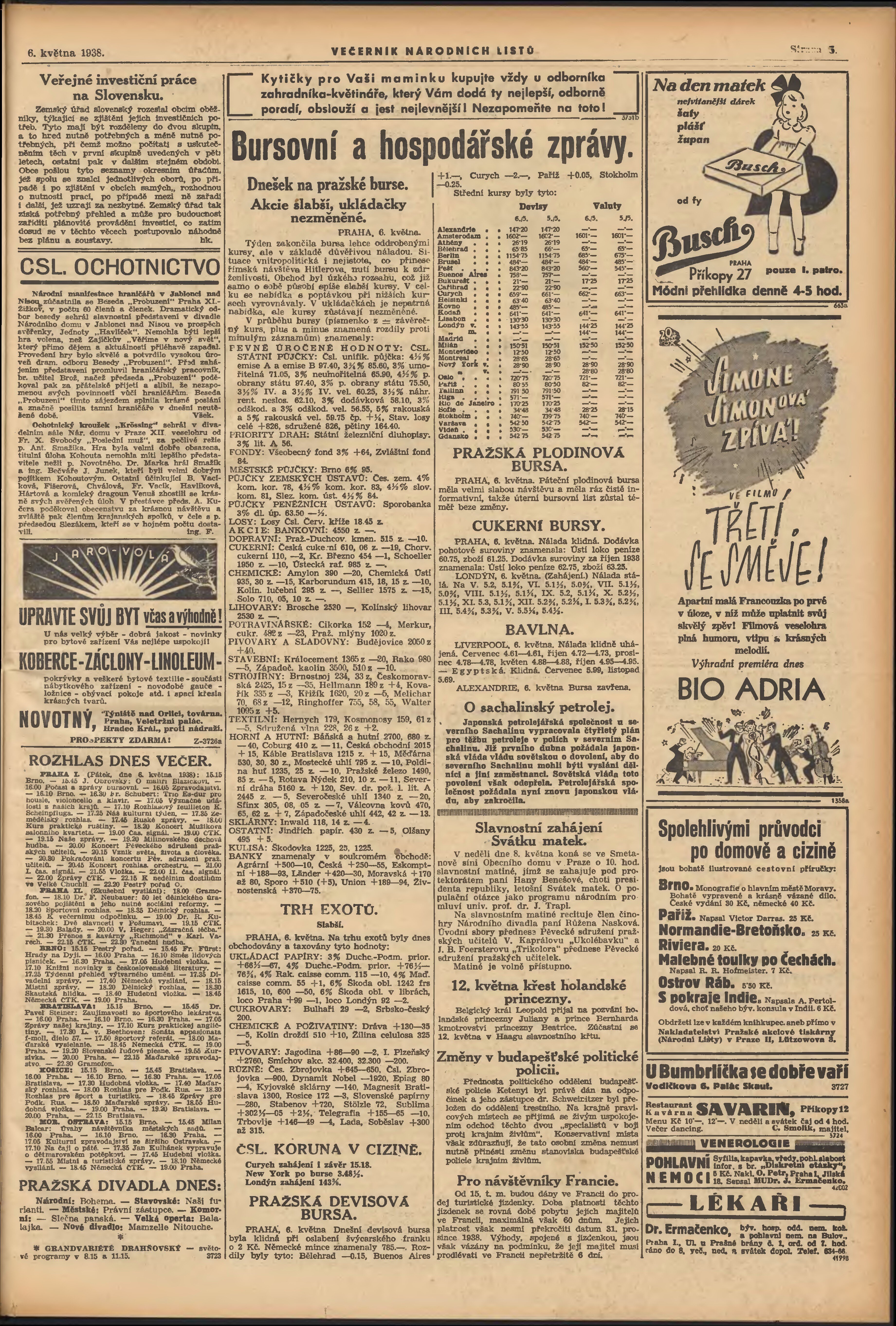 * Datum vydání výtisku: 6.5.1938 Číslo výtisku: 124 Poznámky k výtisku: večerní vydání;