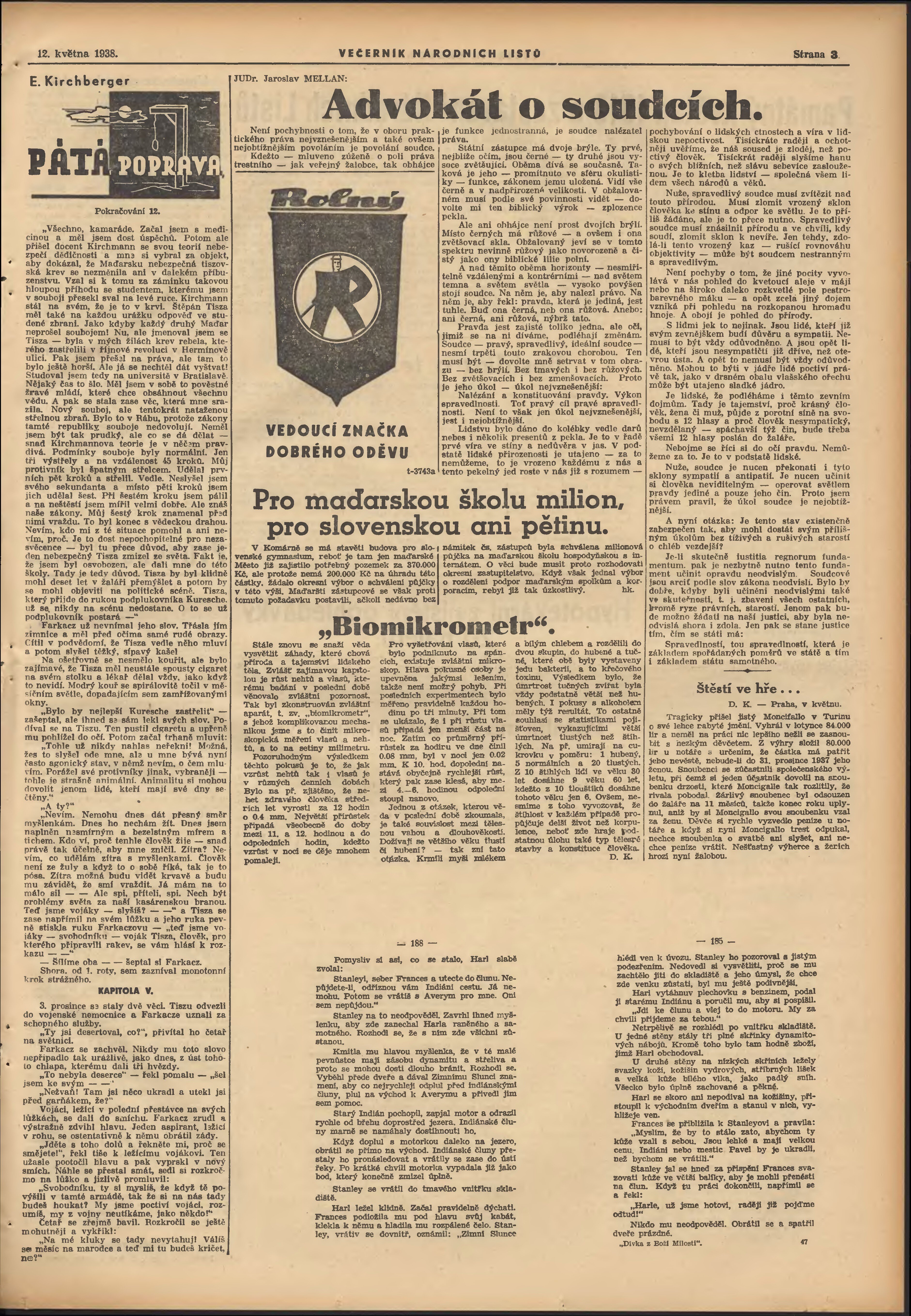 * Datum vydání výtisku: 12.5.1938 Číslo výtisku: 130 Poznámky k výtisku: večerní vydání;