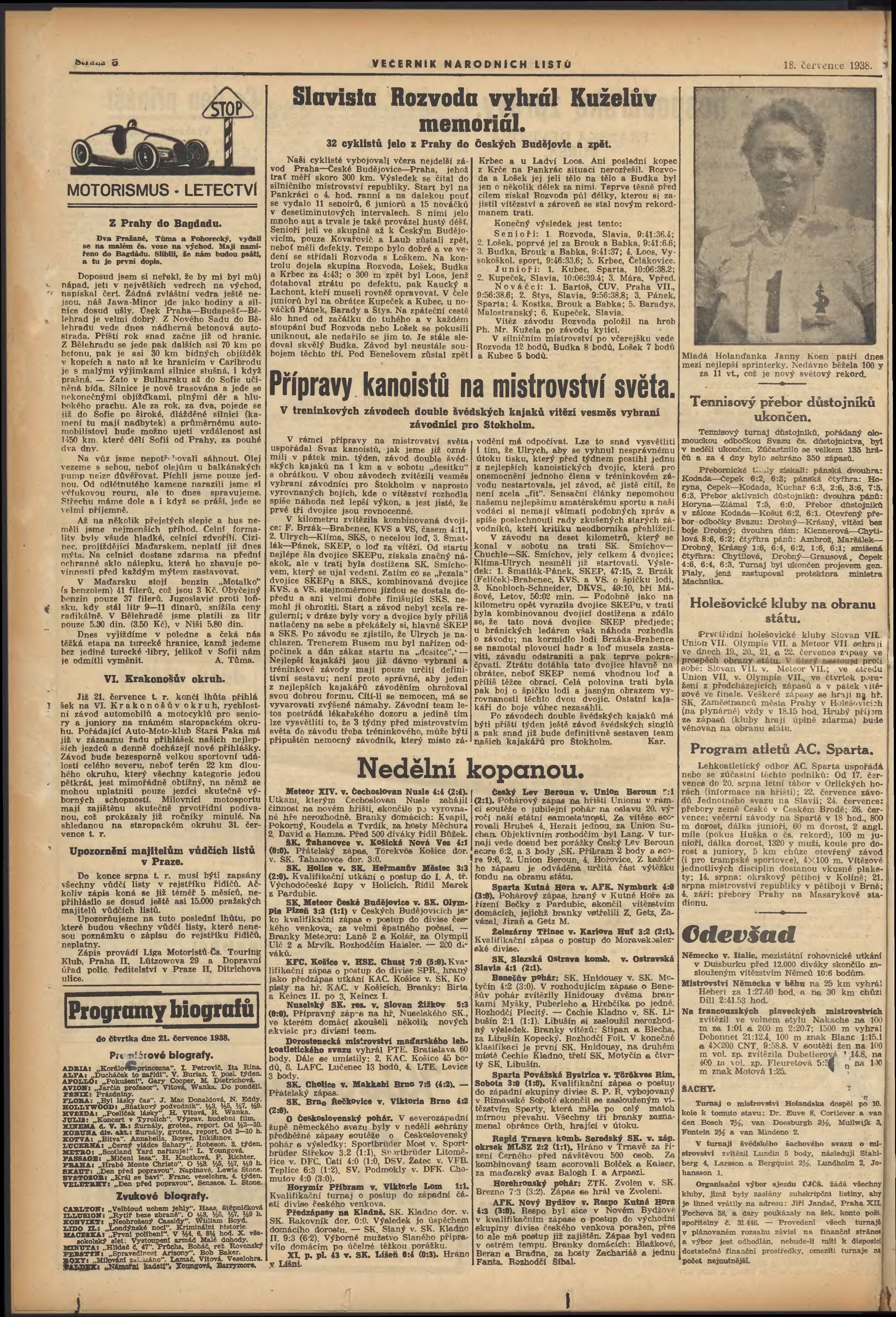 * Datum vydání výtisku: 18.7.1938 Číslo výtisku: 195 Poznámky k výtisku: večerní vydání;