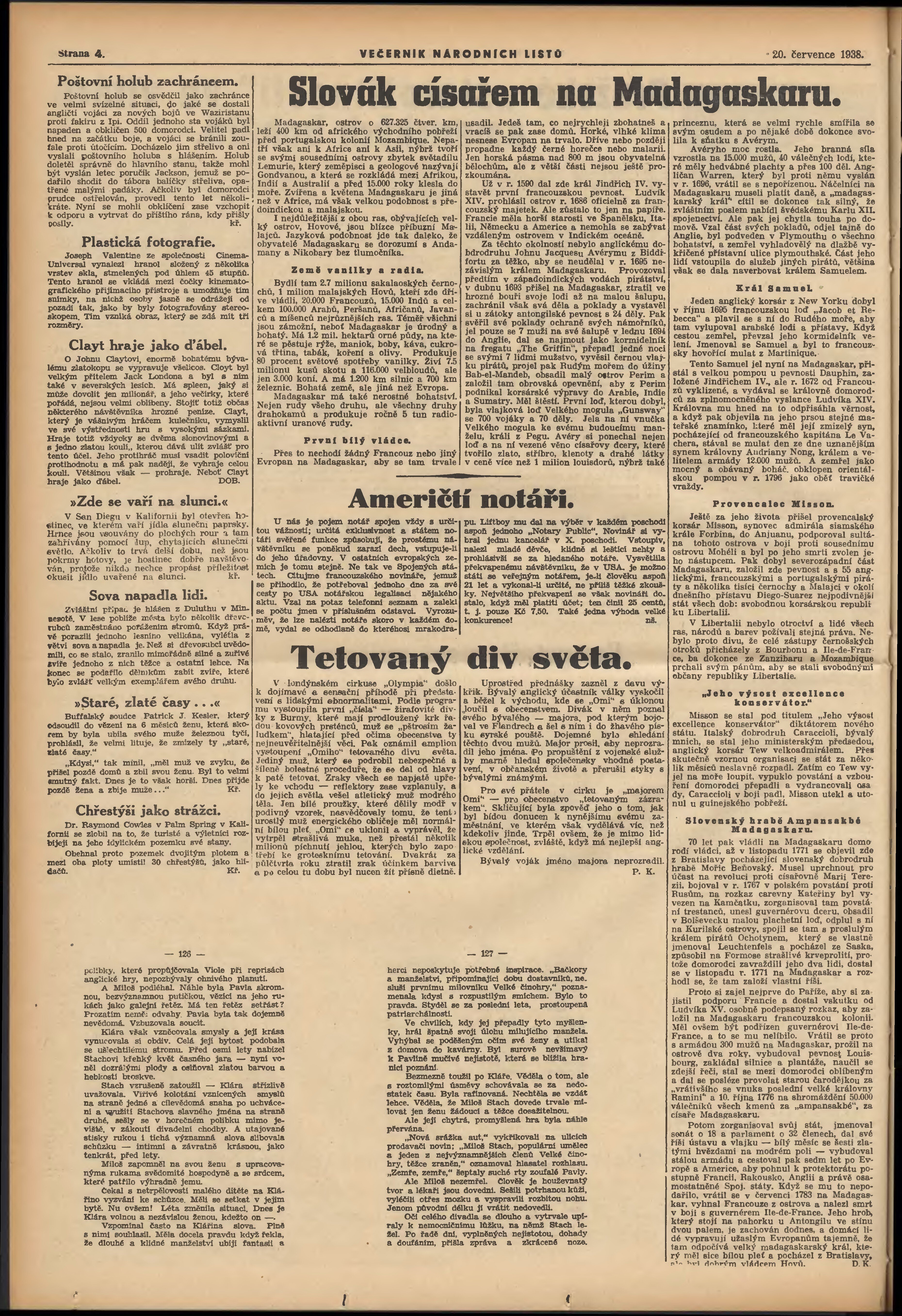 * Datum vydání výtisku: 20.7.1938 Číslo výtisku: 197 Poznámky k výtisku: večerní vydání;