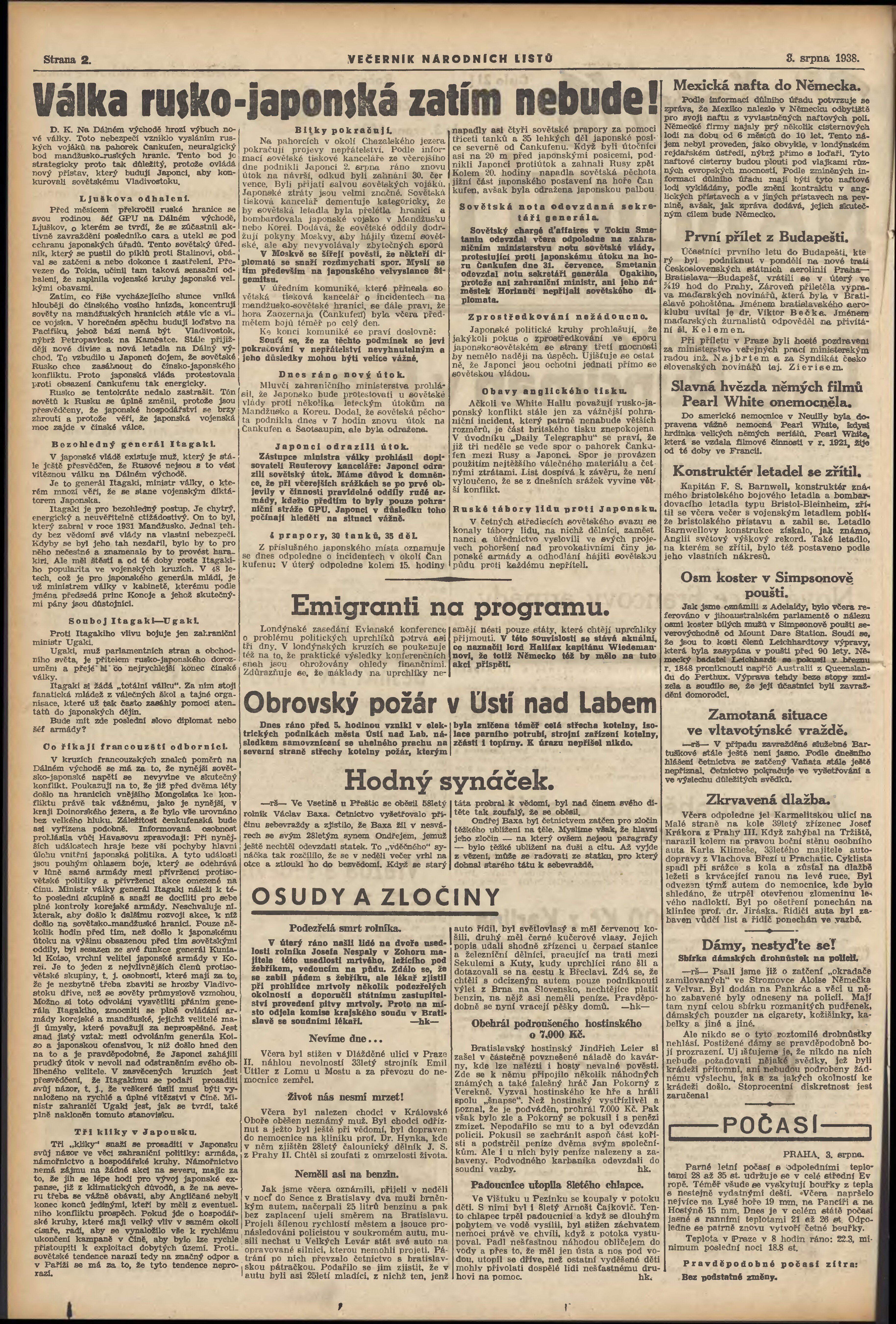 * Datum vydání výtisku: 3.8.1938 Číslo výtisku: 211 Poznámky k výtisku: večerní vydání;