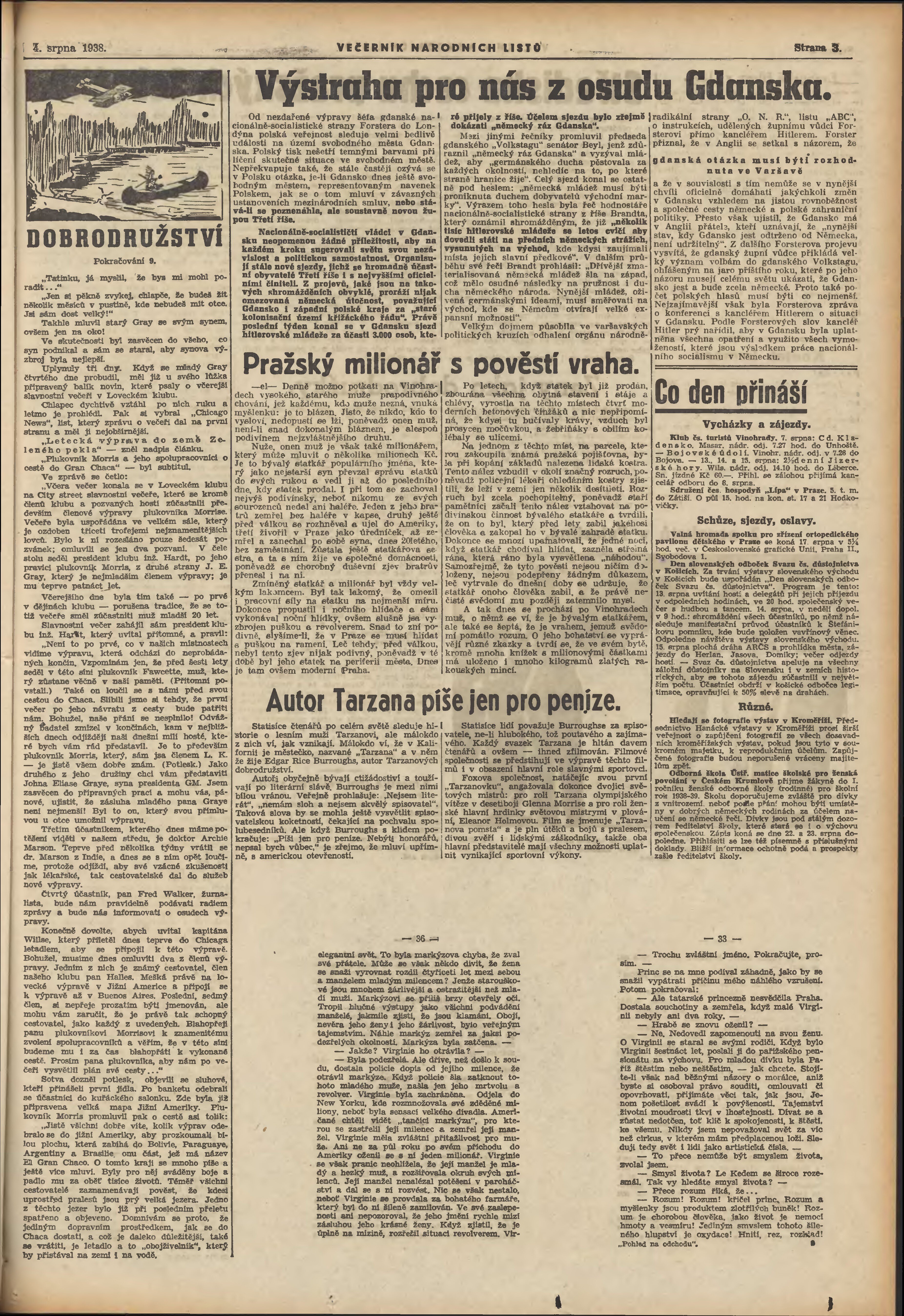 * Datum vydání výtisku: 4.8.1938 Číslo výtisku: 212 Poznámky k výtisku: večerní vydání;