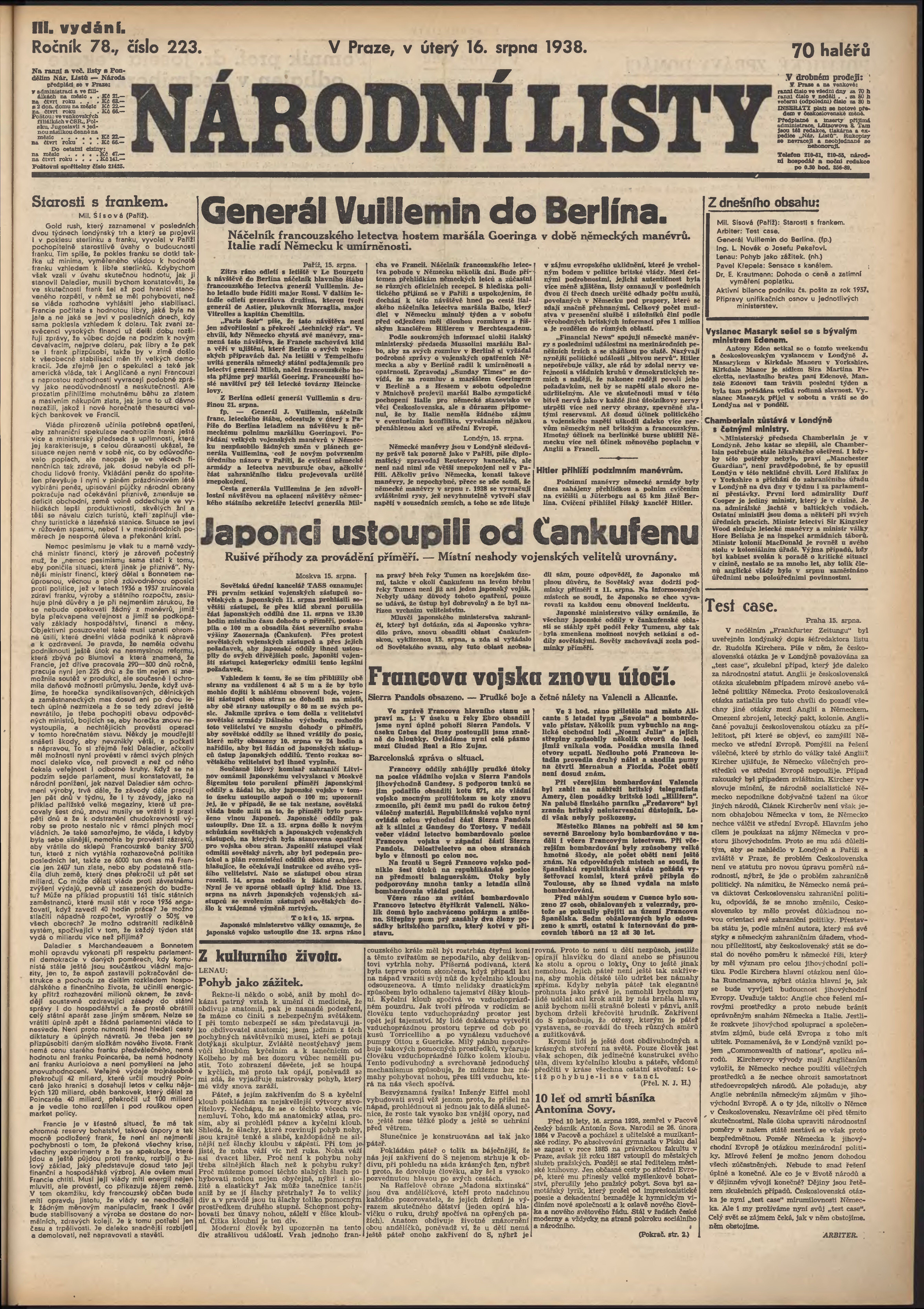 * Datum vydání výtisku: 16.8.1938 Číslo výtisku: 223 Poznámky k výtisku: 3. vydání;