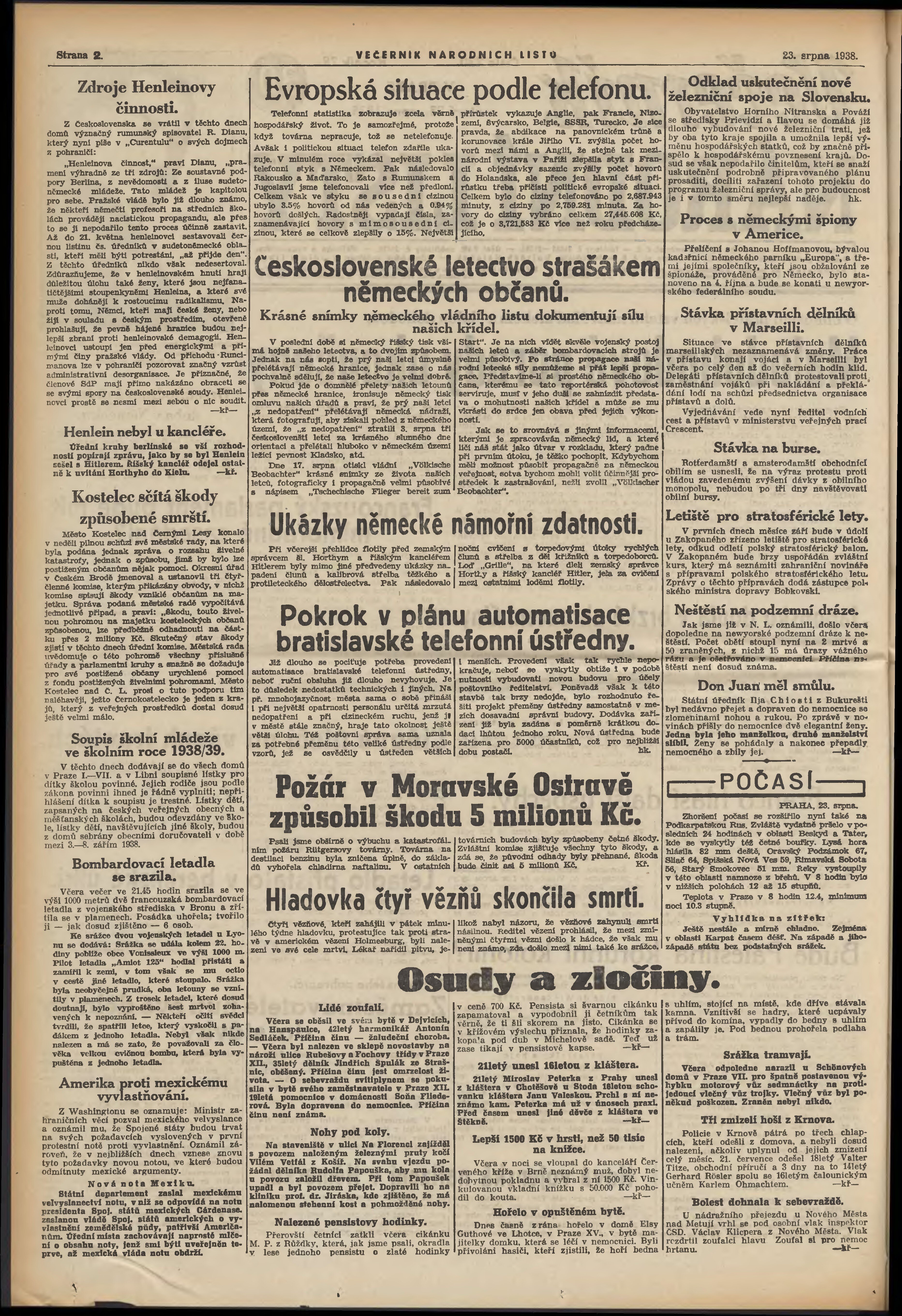 * Datum vydání výtisku: 23.8.1938 Číslo výtisku: 230 Poznámky k výtisku: večerní vydání;