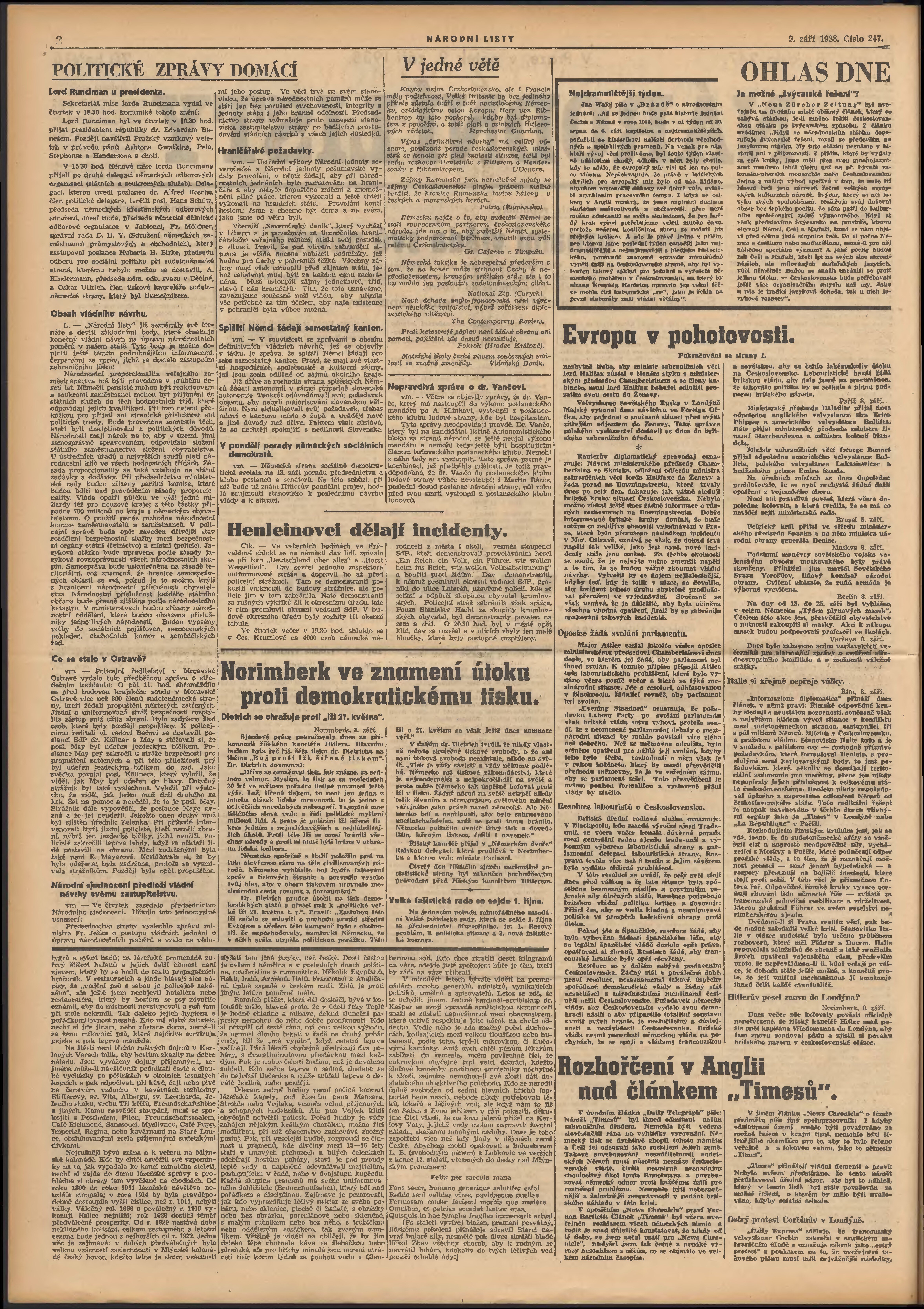 * Datum vydání výtisku: 9.9.1938 Číslo výtisku: 247 Poznámky k výtisku: 3. vydání;