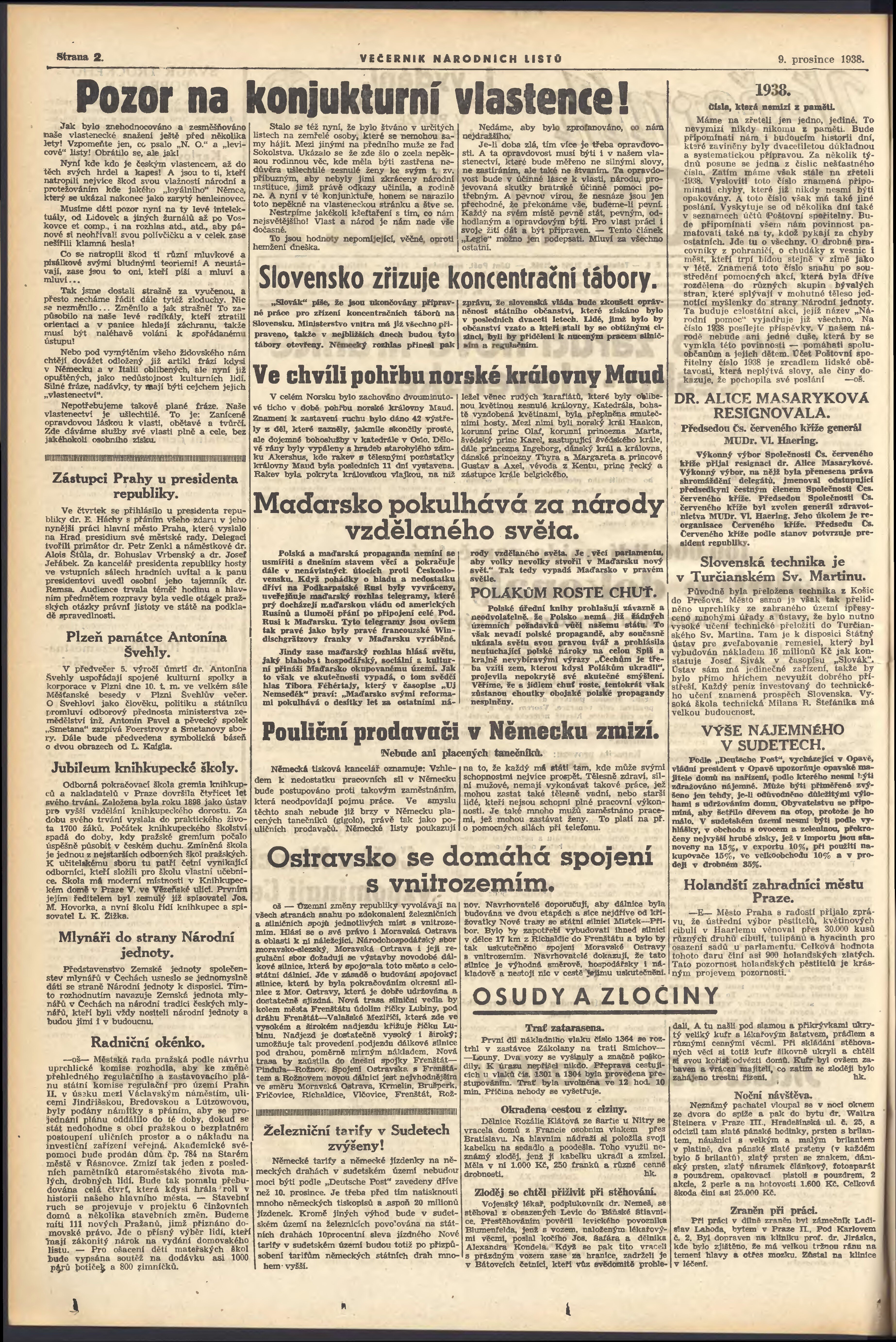 * Datum vydání výtisku: 9.12.1938 Číslo výtisku: 338 Poznámky k výtisku: večerní vydání; 1. vydání;