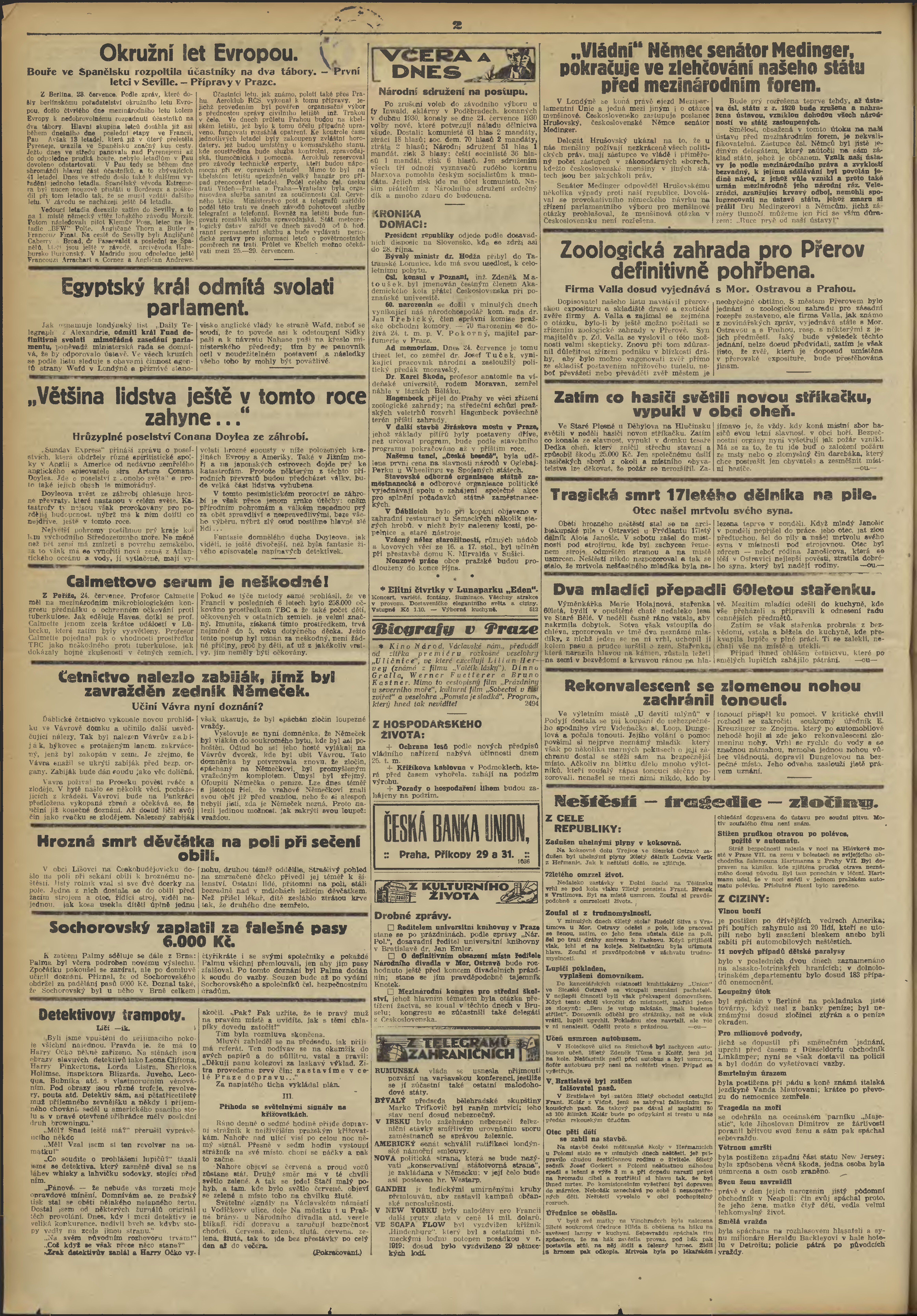 * Datum vydání výtisku: 24.7.1930 Číslo výtisku: 168 Poznámky k výtisku: večerní vydání;