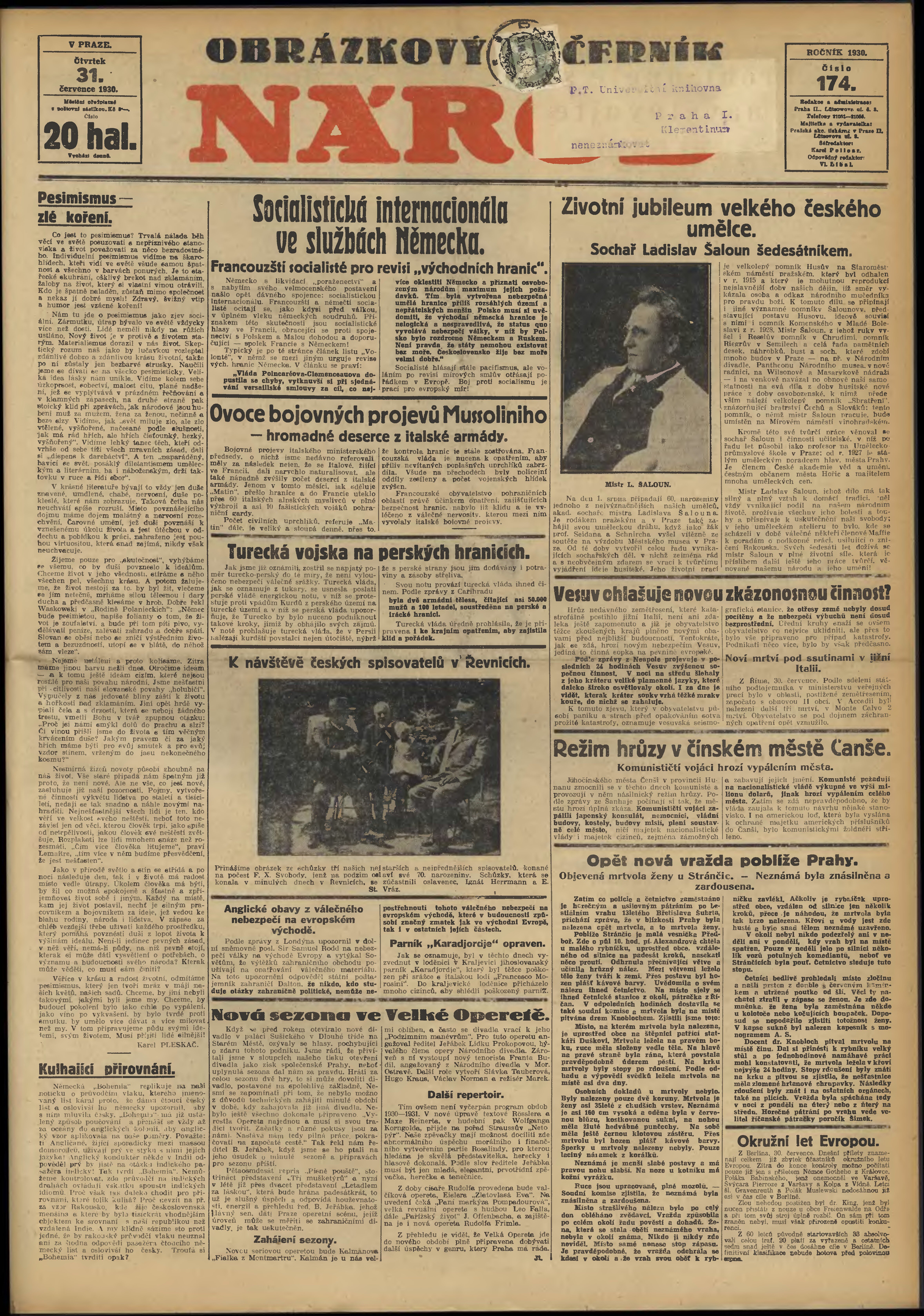 * Datum vydání výtisku: 31.7.1930 Číslo výtisku: 174 Poznámky k výtisku: večerní vydání;