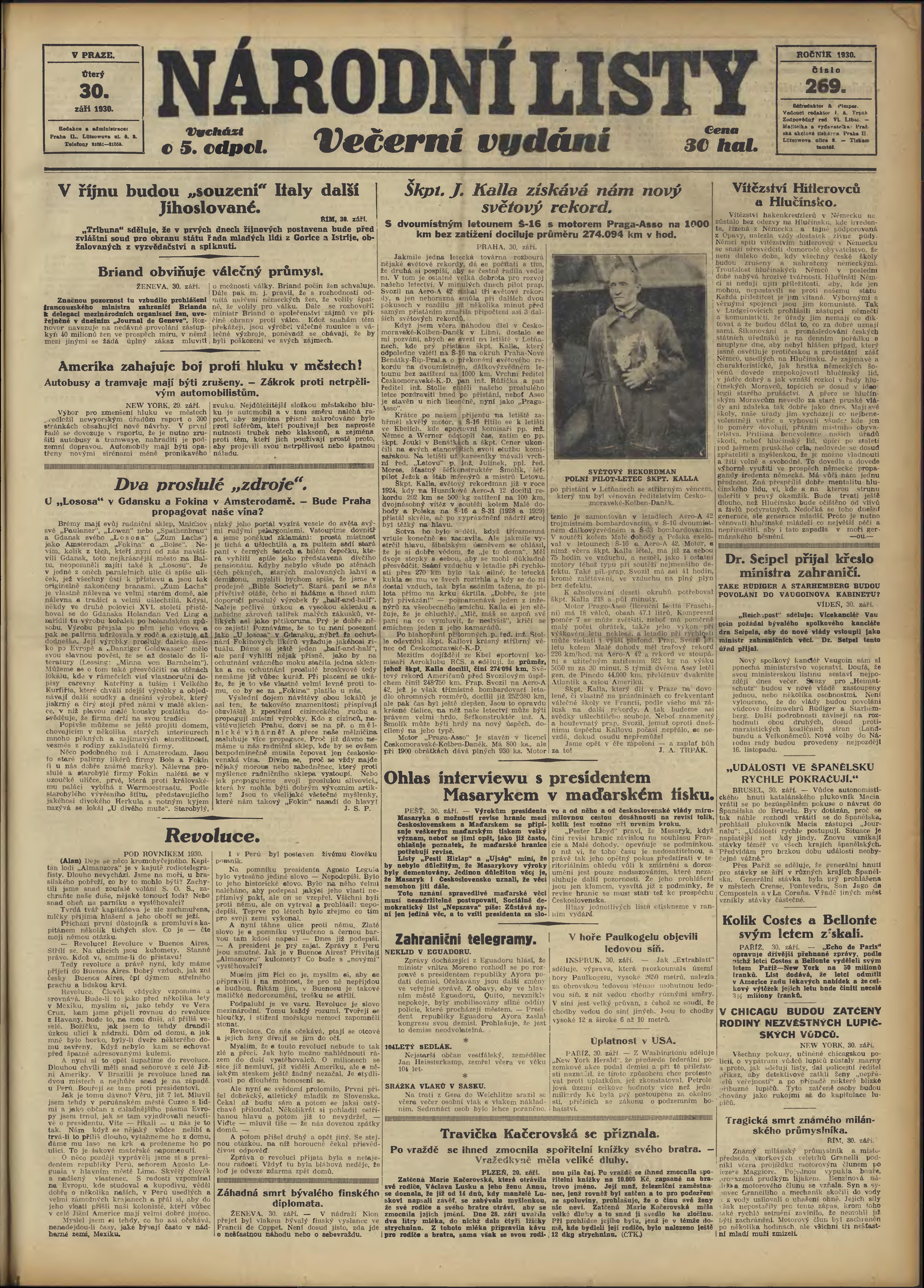 * Datum vydání výtisku: 30.9.1930 Číslo výtisku: 269 Poznámky k výtisku: večerní vydání;