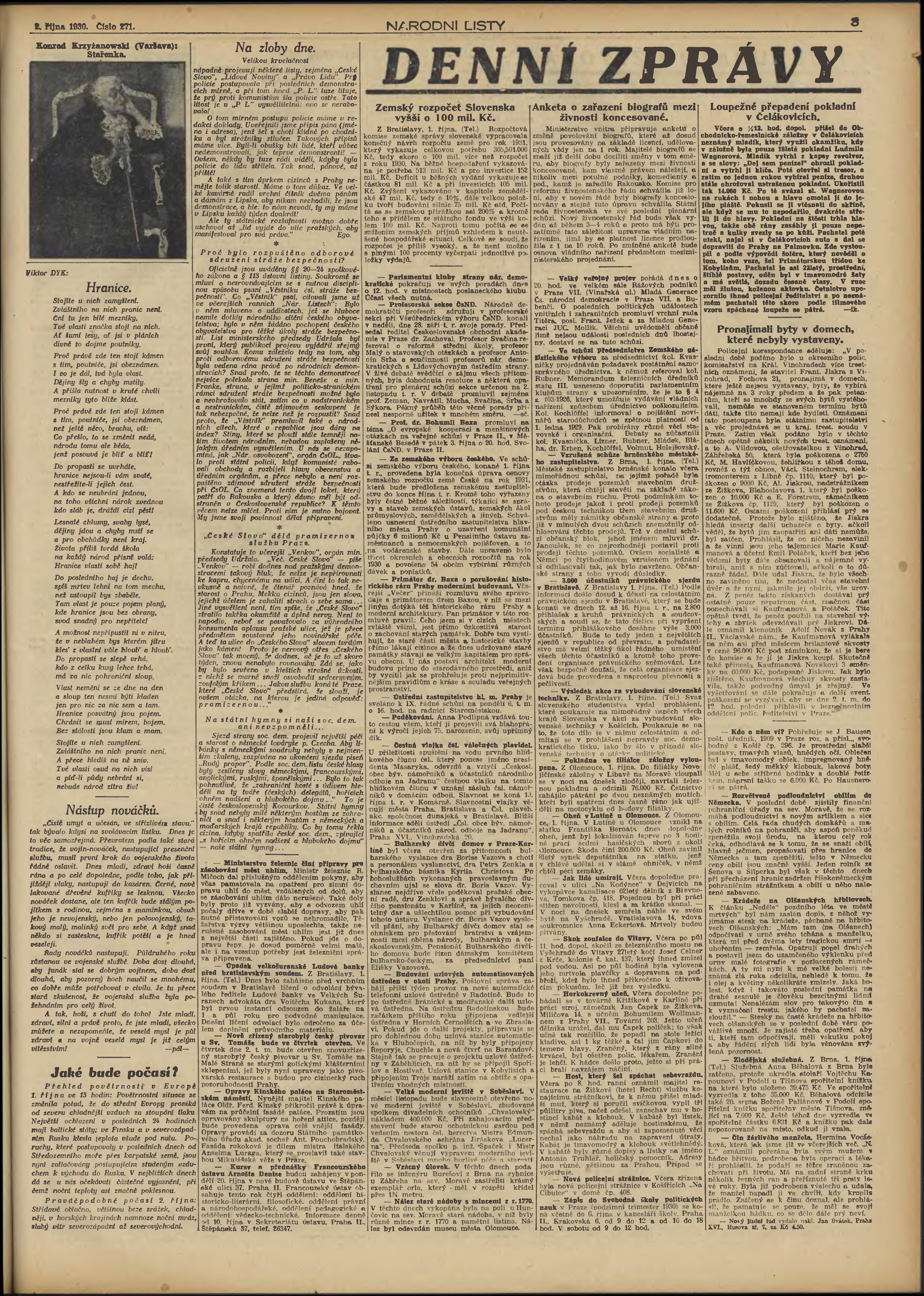 * Datum vydání výtisku: 2.10.1930 Číslo výtisku: 271 Poznámky k výtisku: 2. vydání;