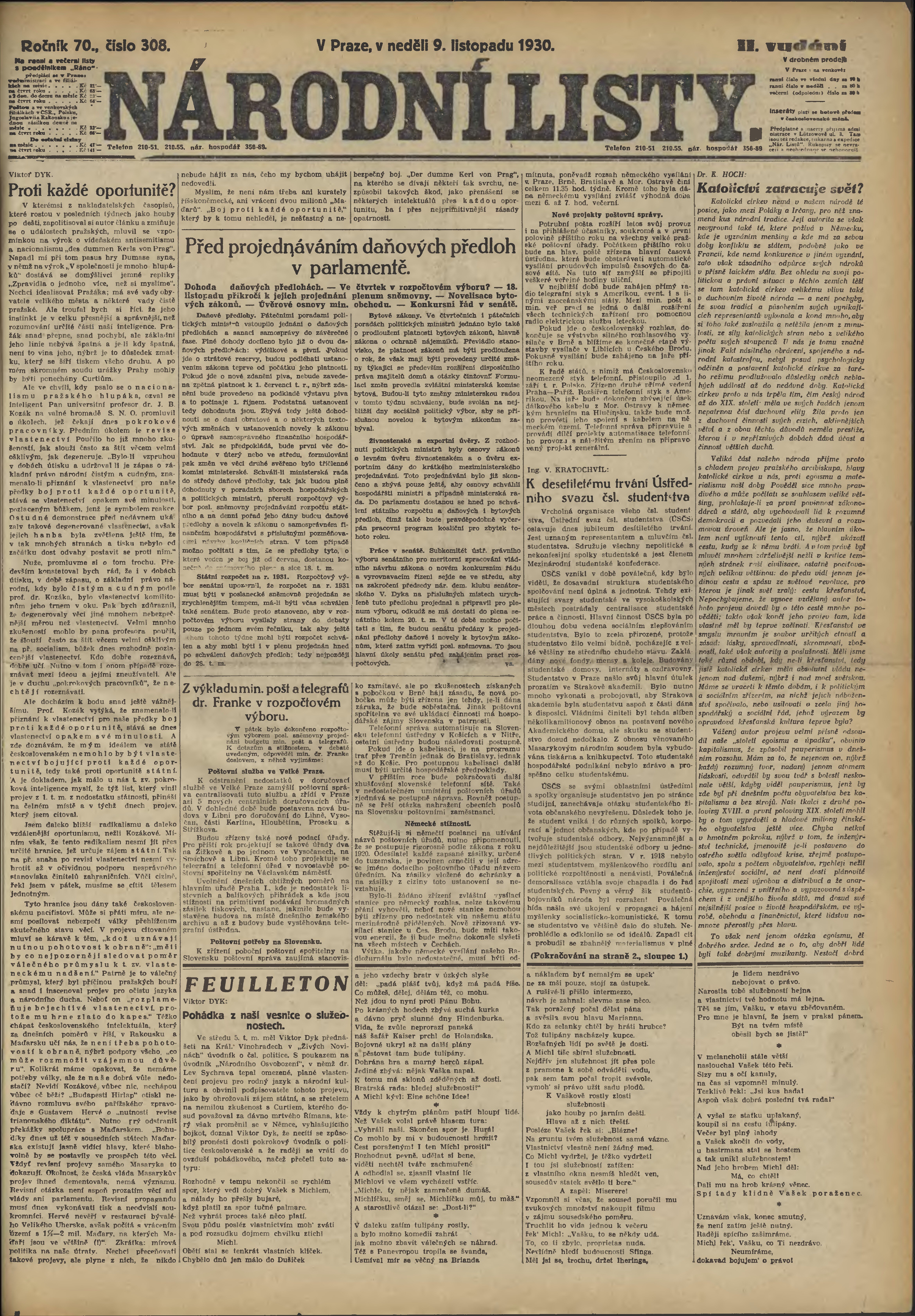 * Datum vydání výtisku: 9.11.1930 Číslo výtisku: 308 Poznámky k výtisku: 2. vydání;