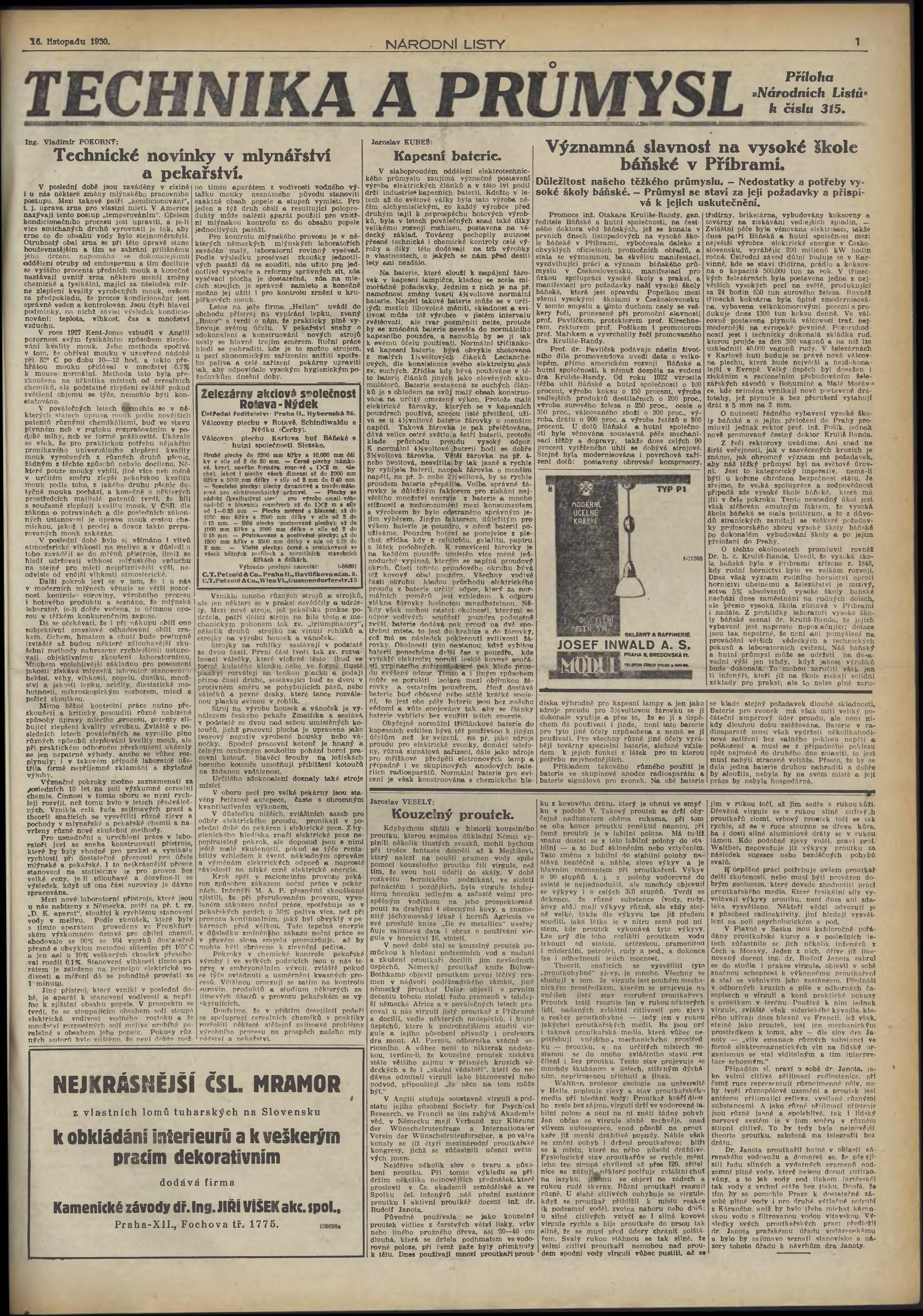 * Datum vydání výtisku: 16.11.1930 Číslo výtisku: 315 Typ výtisku: příloha