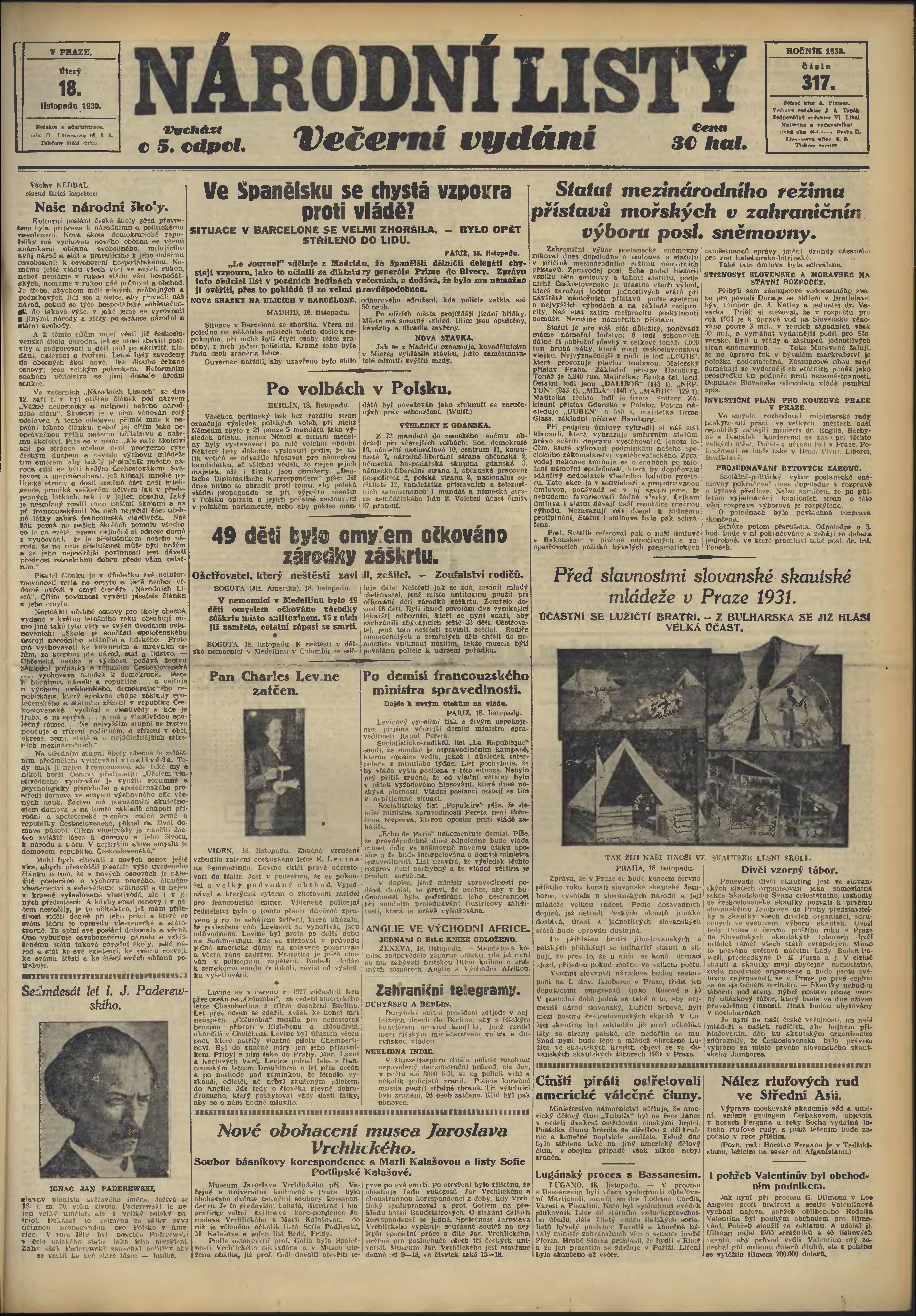 * Datum vydání výtisku: 18.11.1930 Číslo výtisku: 317 Poznámky k výtisku: večerní vydání;