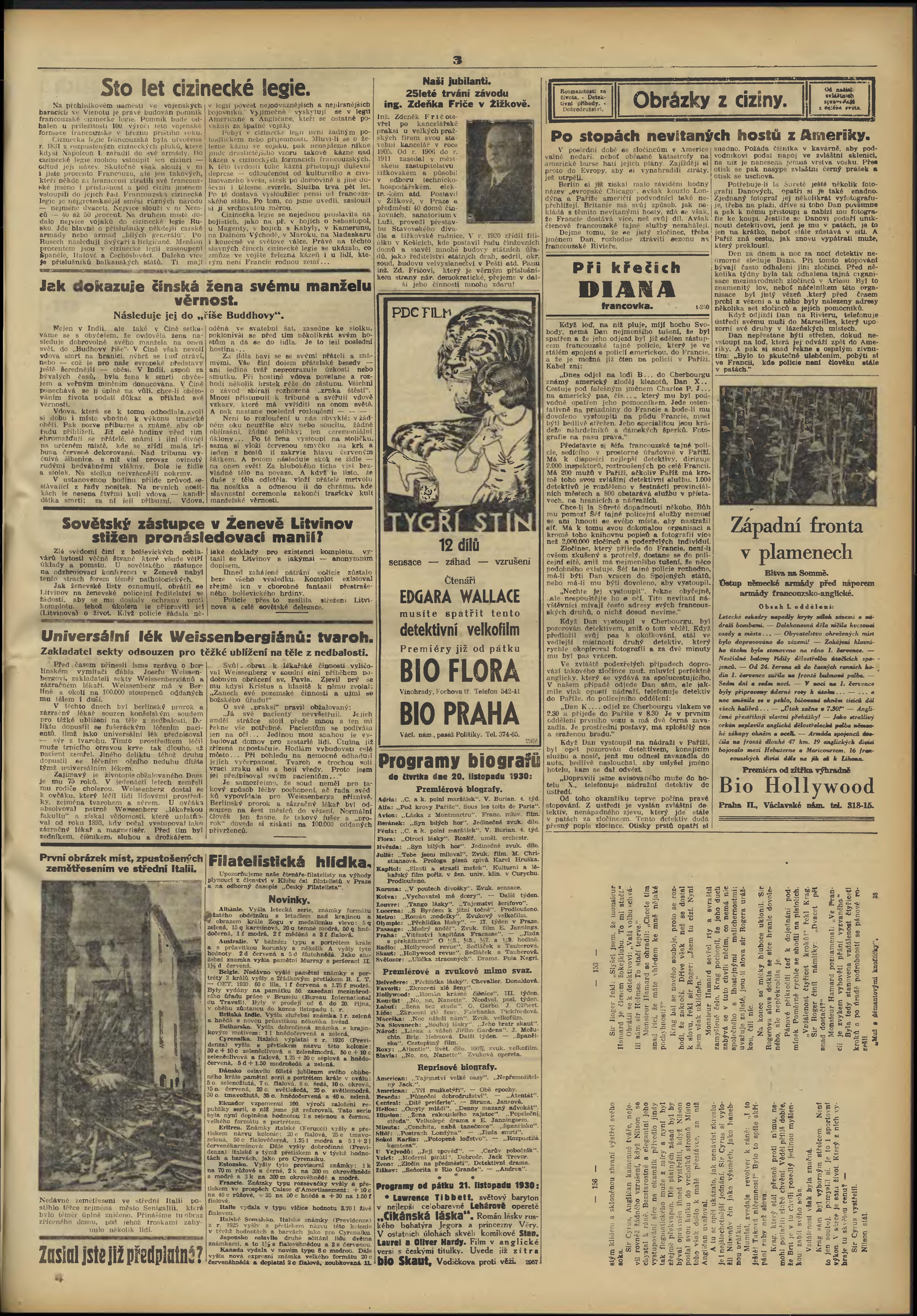 * Datum vydání výtisku: 20.11.1930 Číslo výtisku: 267 Poznámky k výtisku: večerní vydání;
