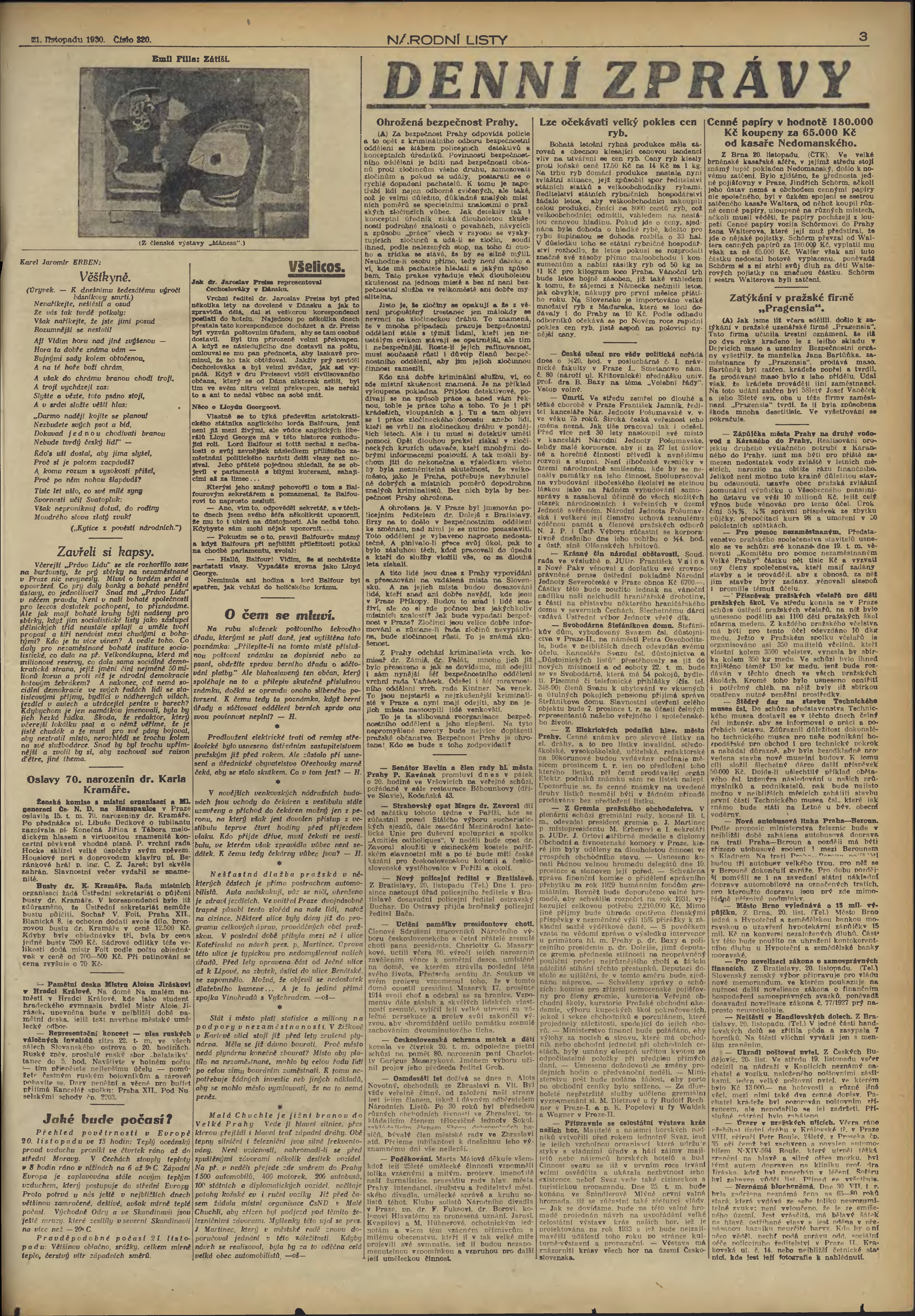 * Datum vydání výtisku: 21.11.1930 Číslo výtisku: 320 Poznámky k výtisku: 2. vydání;
