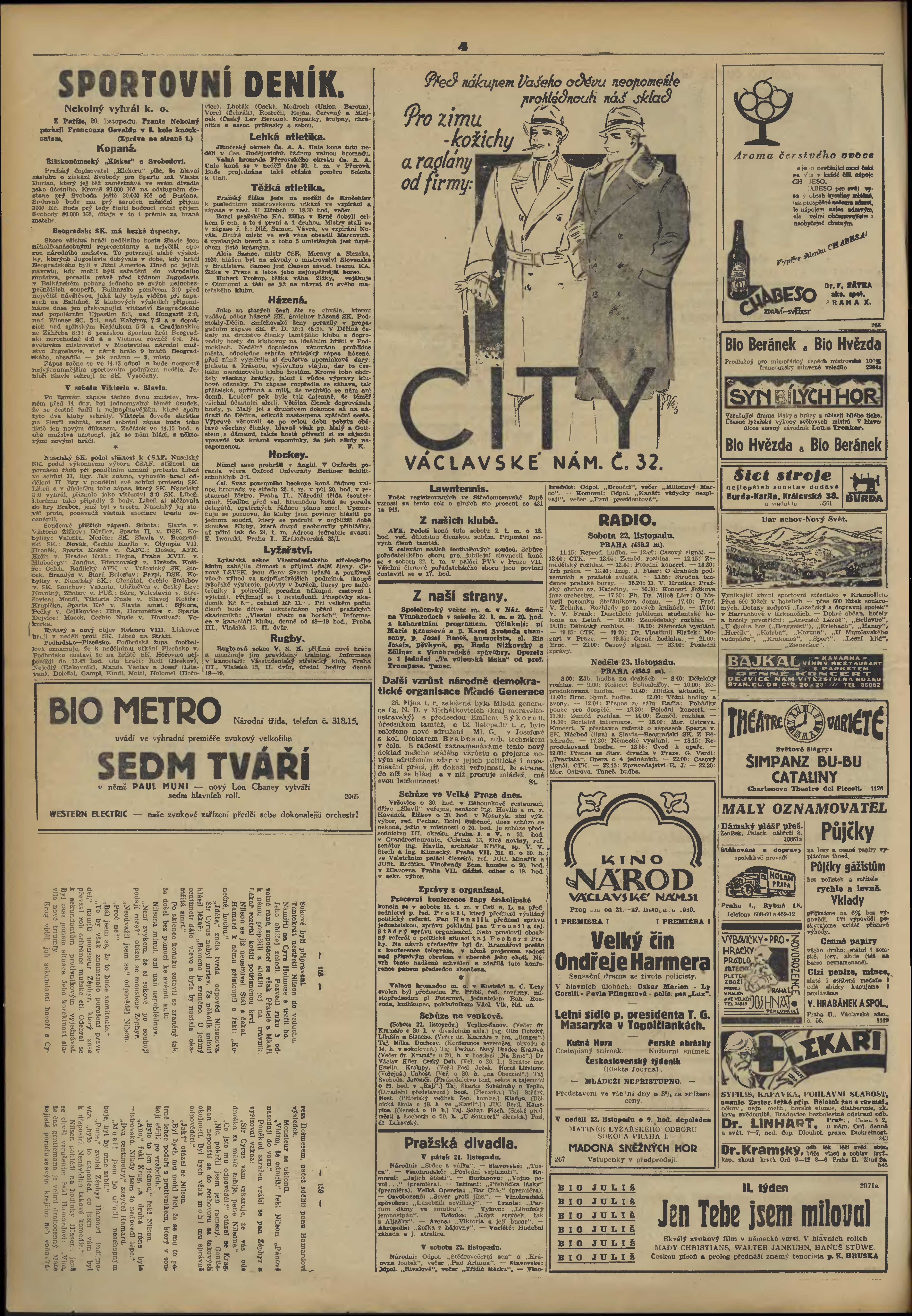 * Datum vydání výtisku: 21.11.1930 Číslo výtisku: 320 Poznámky k výtisku: večerní vydání;