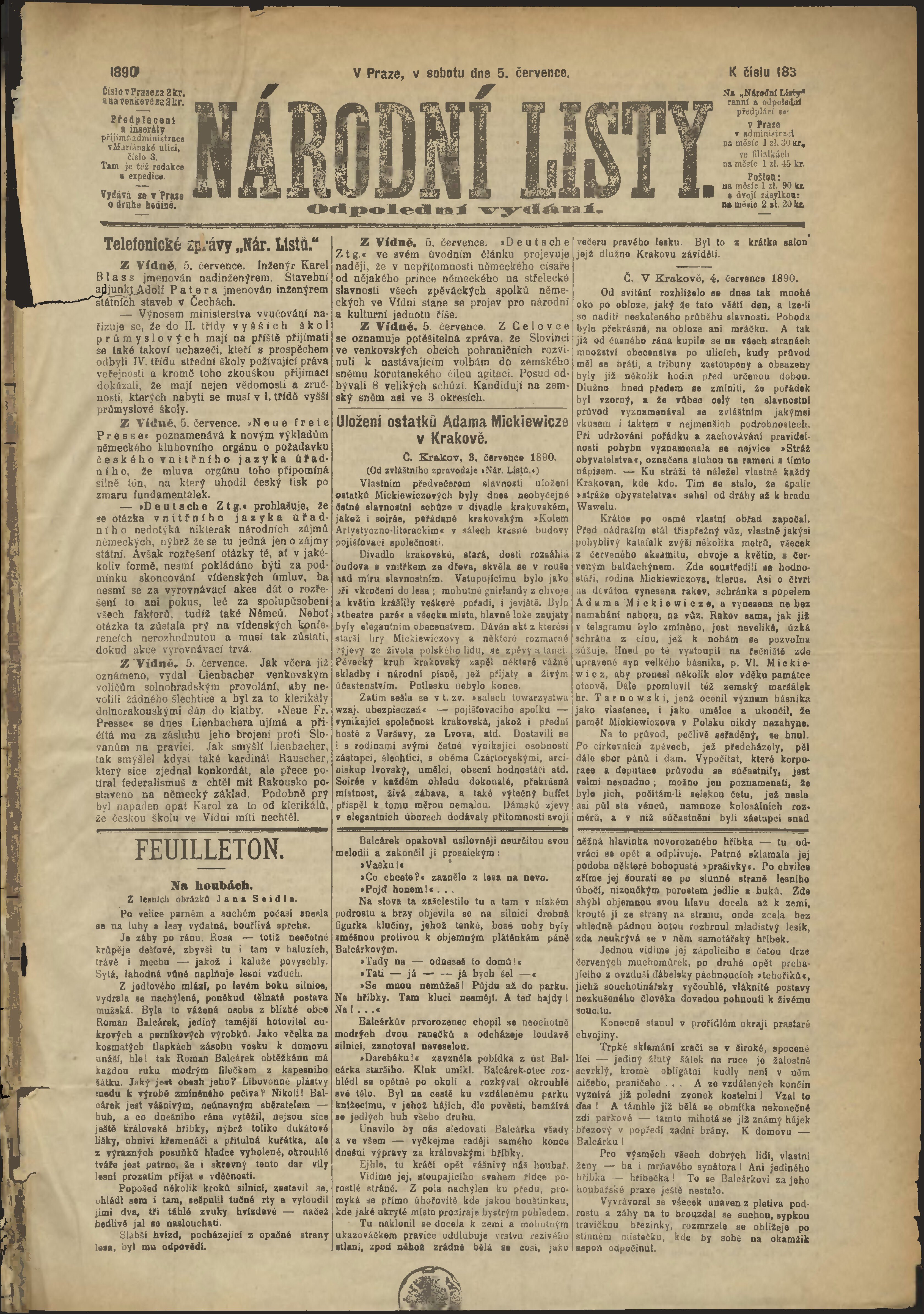 * Datum vydání výtisku: 5.7.1890 Číslo výtisku: 183 Poznámky k výtisku: odpolední vydání;