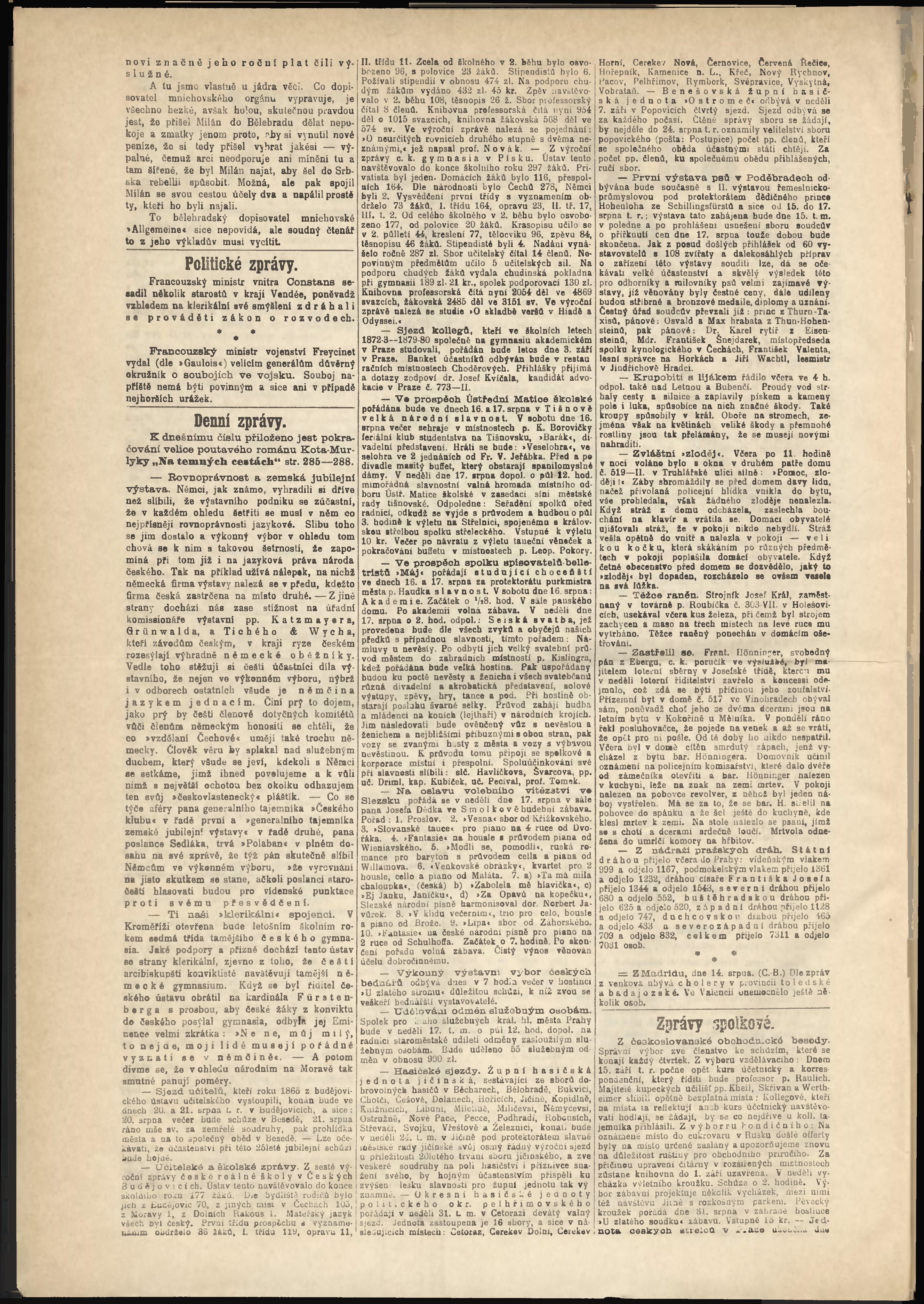* Datum vydání výtisku: 14.8.1890 Číslo výtisku: 223 Poznámky k výtisku: odpolední vydání;