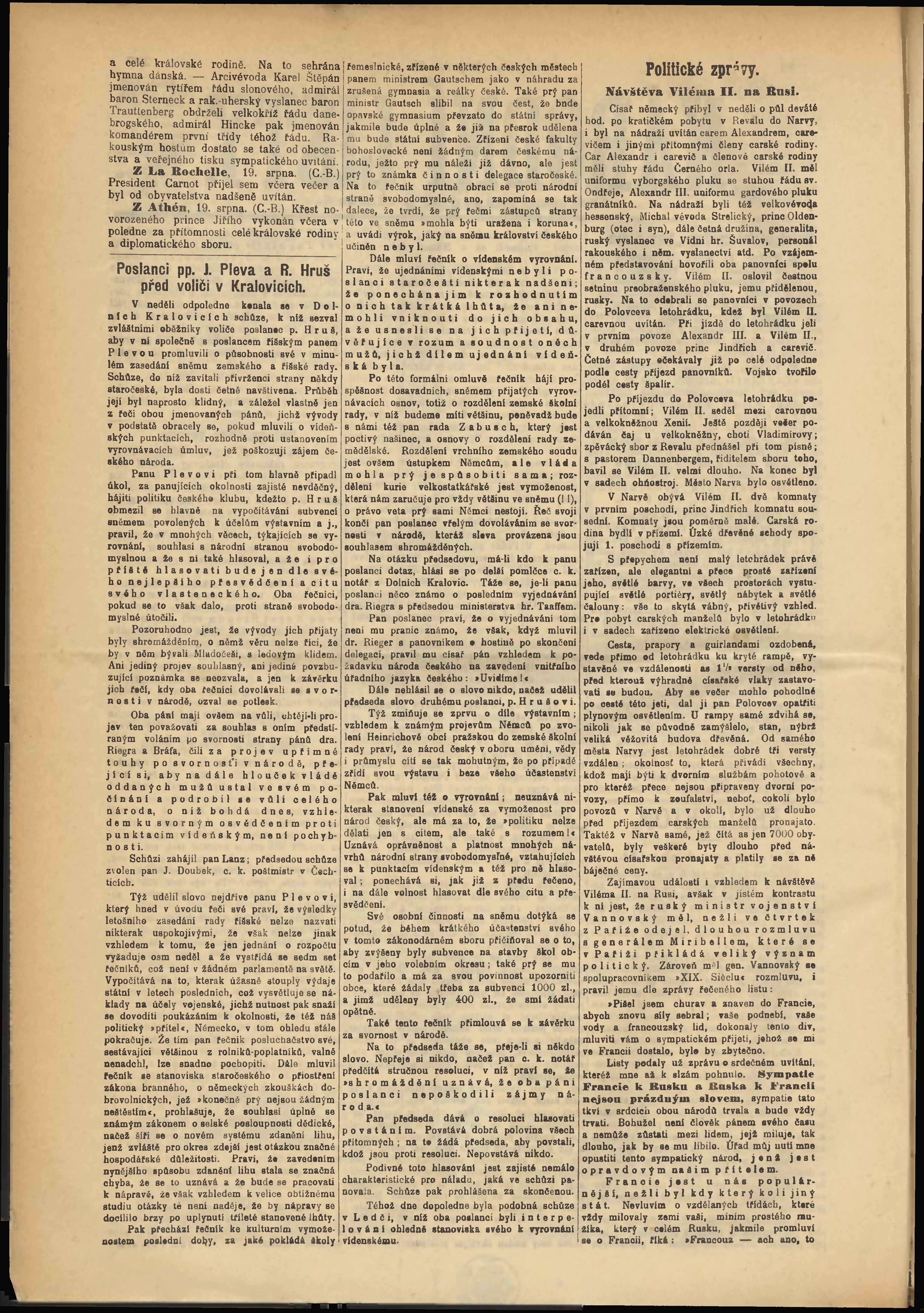 * Datum vydání výtisku: 19.8.1890 Číslo výtisku: 228 Poznámky k výtisku: odpolední vydání;