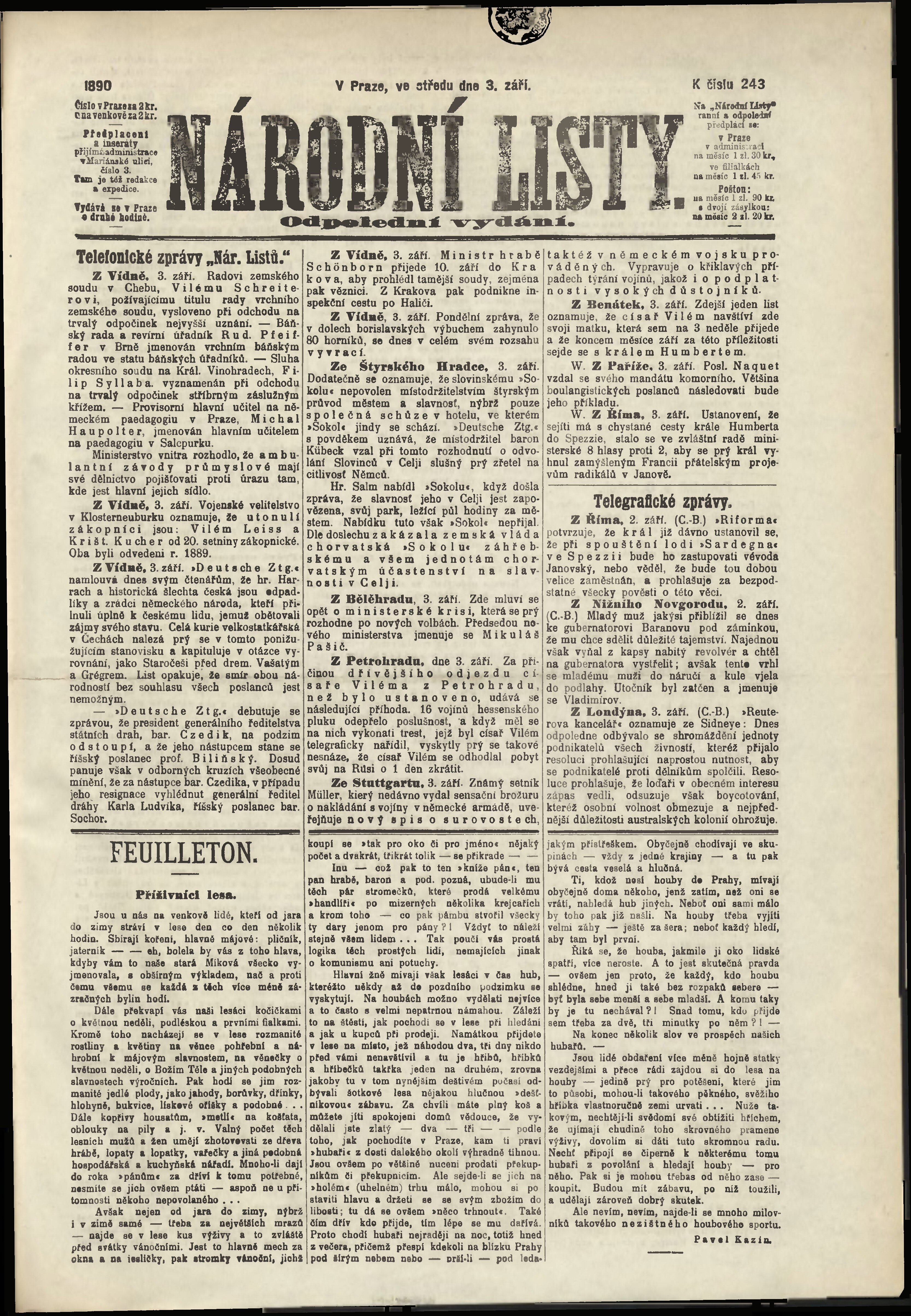 * Datum vydání výtisku: 3.9.1890 Číslo výtisku: 243 Poznámky k výtisku: odpolední vydání;