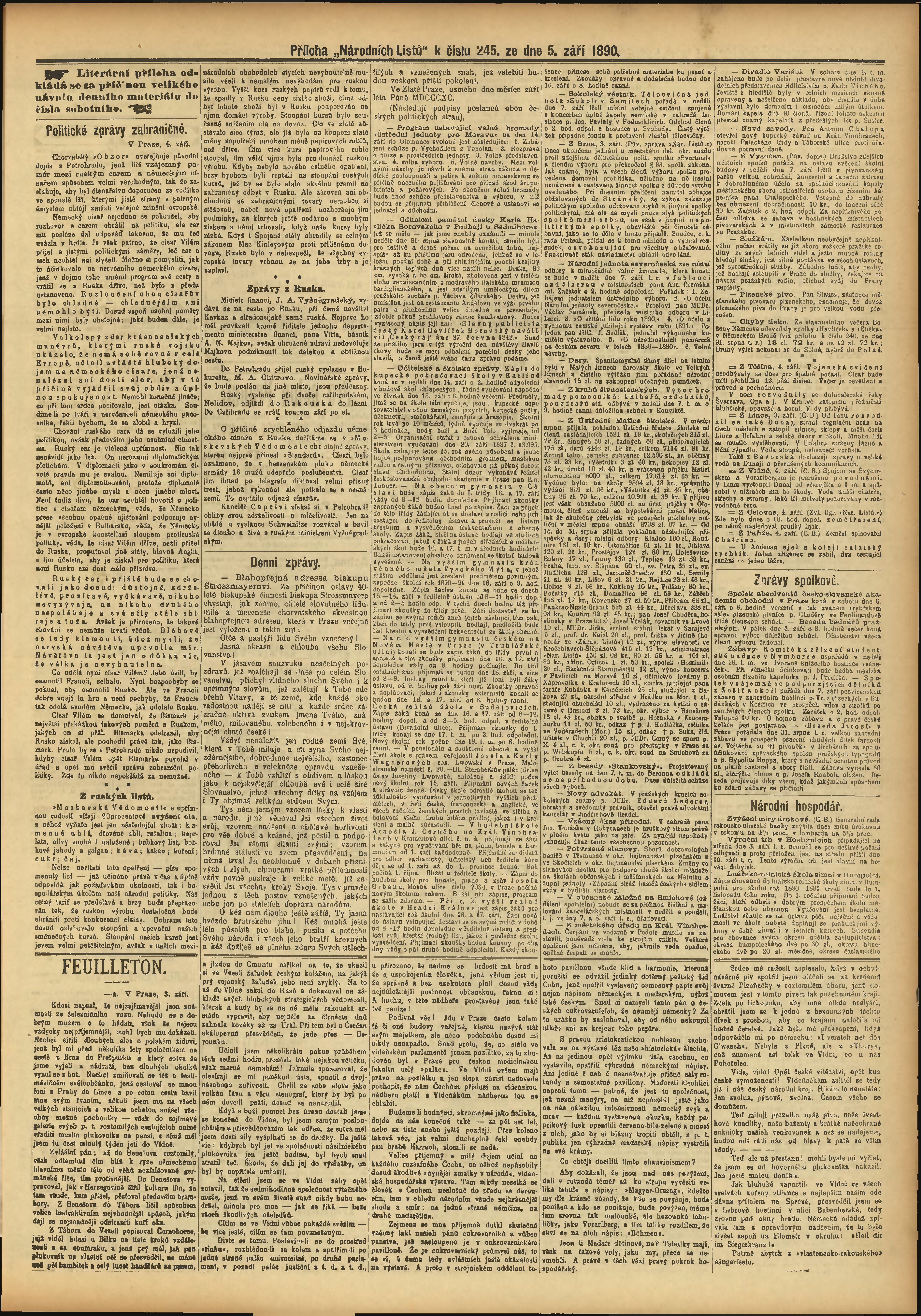 * Datum vydání výtisku: 5.9.1890 Číslo výtisku: 245