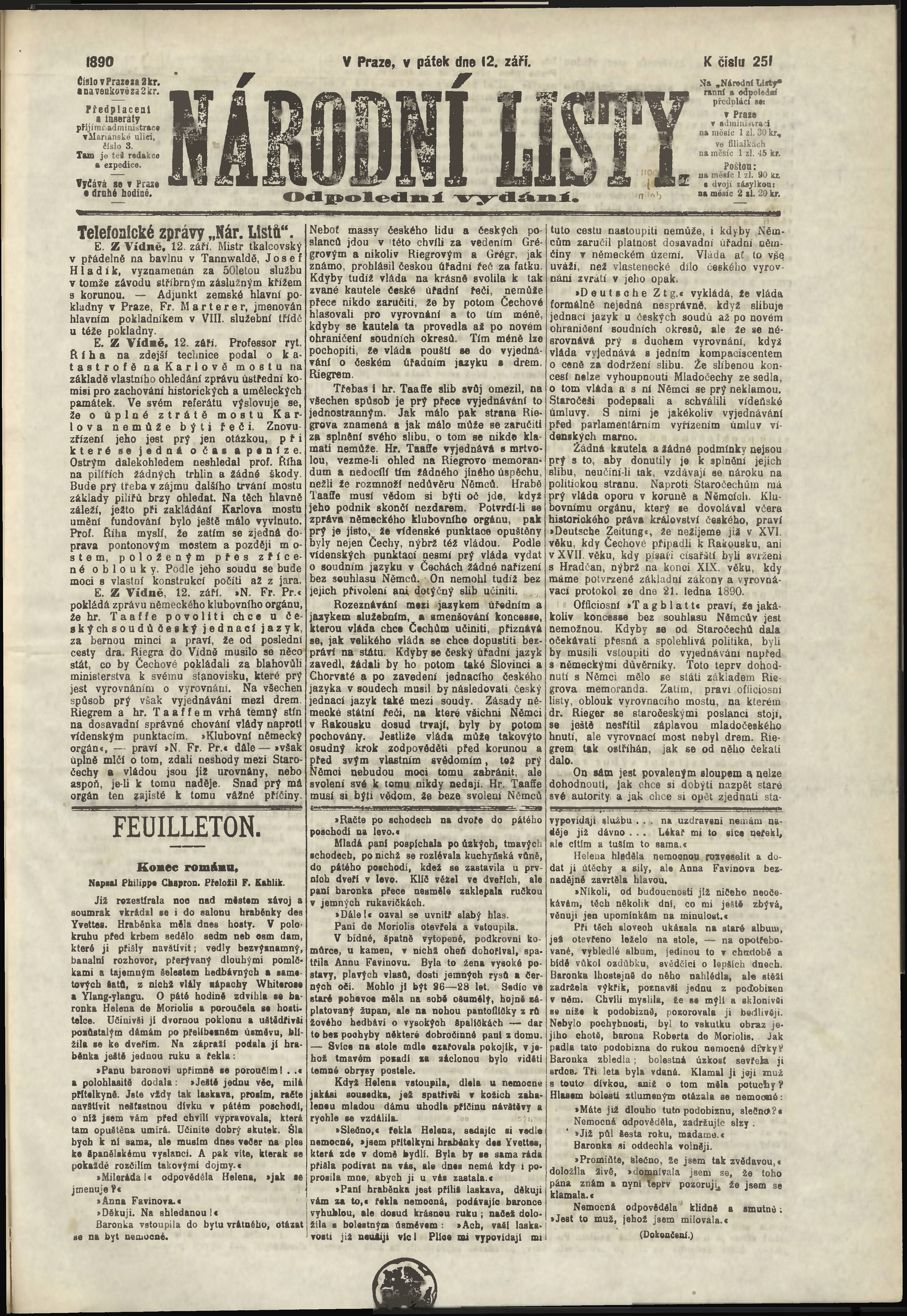 * Datum vydání výtisku: 12.9.1890 Číslo výtisku: 251 Poznámky k výtisku: odpolední vydání;