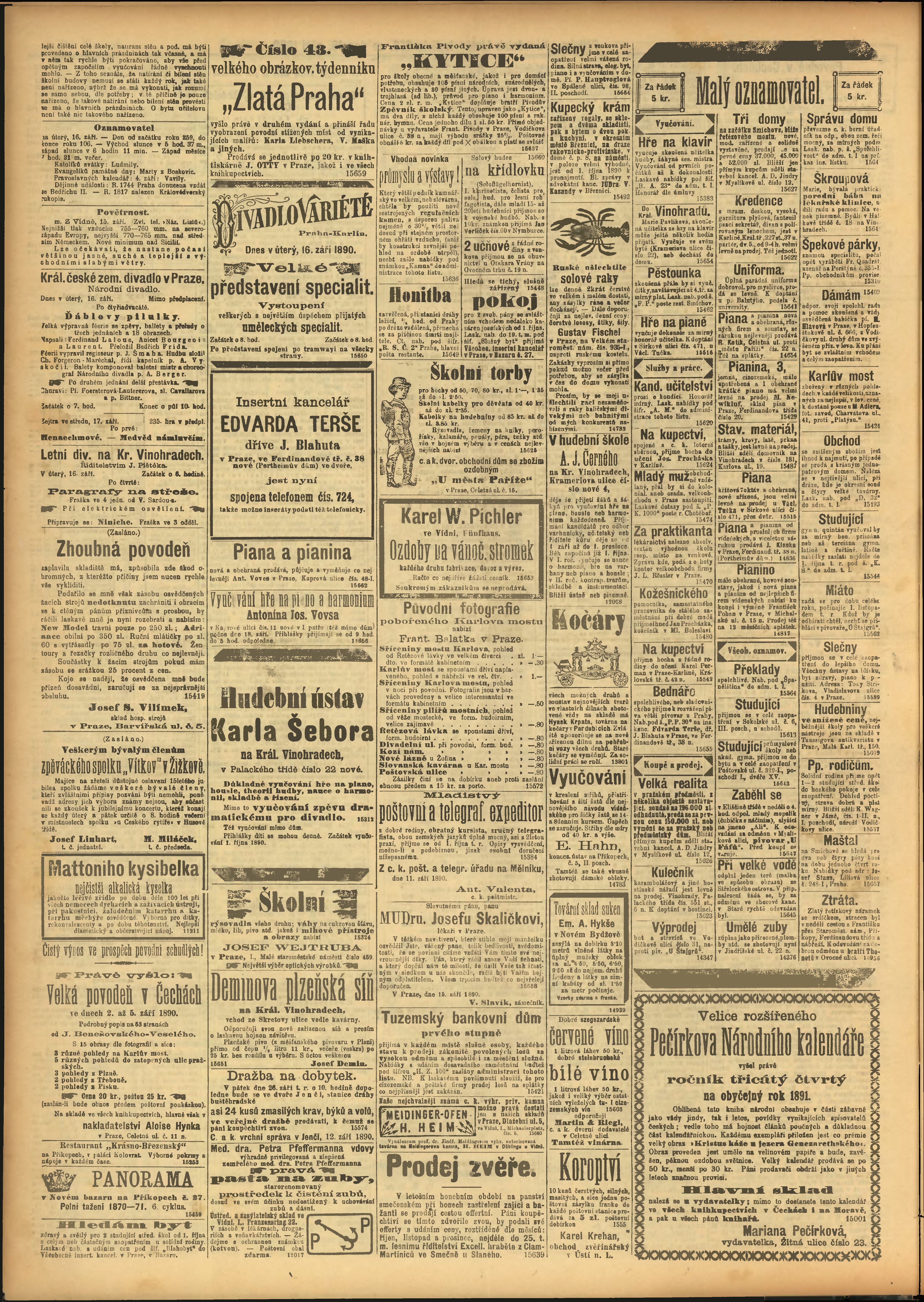 * Datum vydání výtisku: 16.9.1890 Číslo výtisku: 255